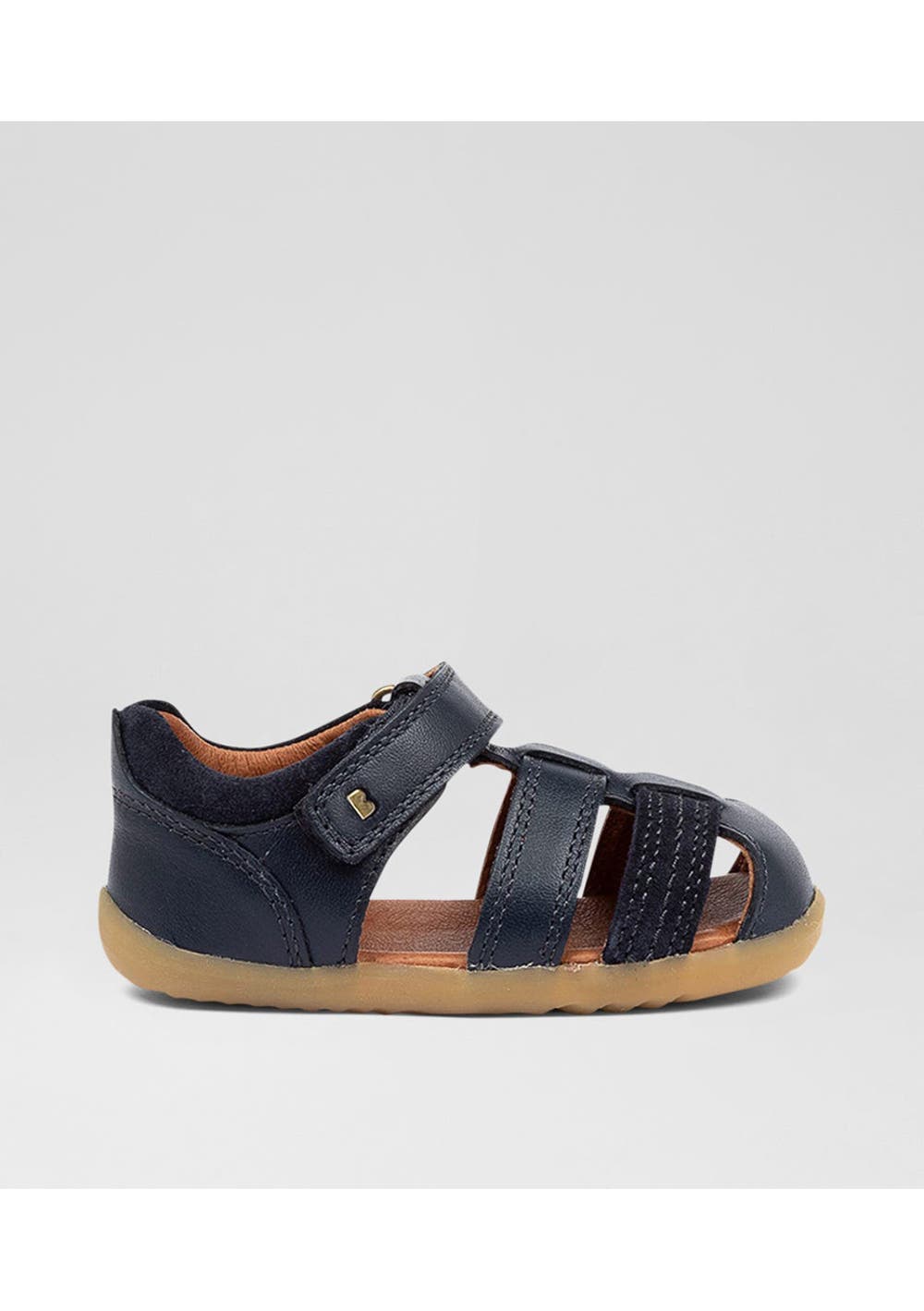 This classic summer sandal has a closed toe for added protection, while open sides provide airflow and breathability. The Roam sandal boasts an ankle strap fastening for a secure, adjustable fit and our signature brass icon rivets adds sophistication to any summer outfit. Vintage-look leather upper with wax finish Adjustable ankle strap fastening to suit average width feet Padded heel counter for comfort Flexible TPR sole for growing feet Suitable for first-walkers By caring for your Bobux they’ll stay looking better for longer. Find the best care product for this style here