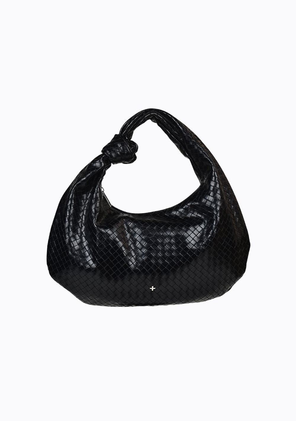 Features Evity is a weave embossed slouchy shoulder bag featuring a main compartment secured with a zipper. Internally, there are three pockets - one with a zipper and two loose. The bag features a fixed shoulder strap with knot detailing. The bag is adorned with silver hardware. Dimensions L: 40cm (15.75”) x H: 25cm (9.84”) x W: 7cm (2.75”) STRAP DROP: 19CM (7.48") Materials Outer - Polyurethane Inner - Polyester