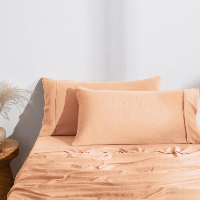 Dreamaker Superfine Washed Microfibre King Pillowcase Twin Pack Peach