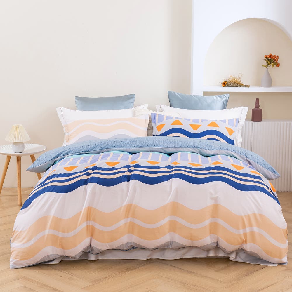 Dreamaker Capri 100% Cotton Reversible Quilt Cover Set Double Bed
