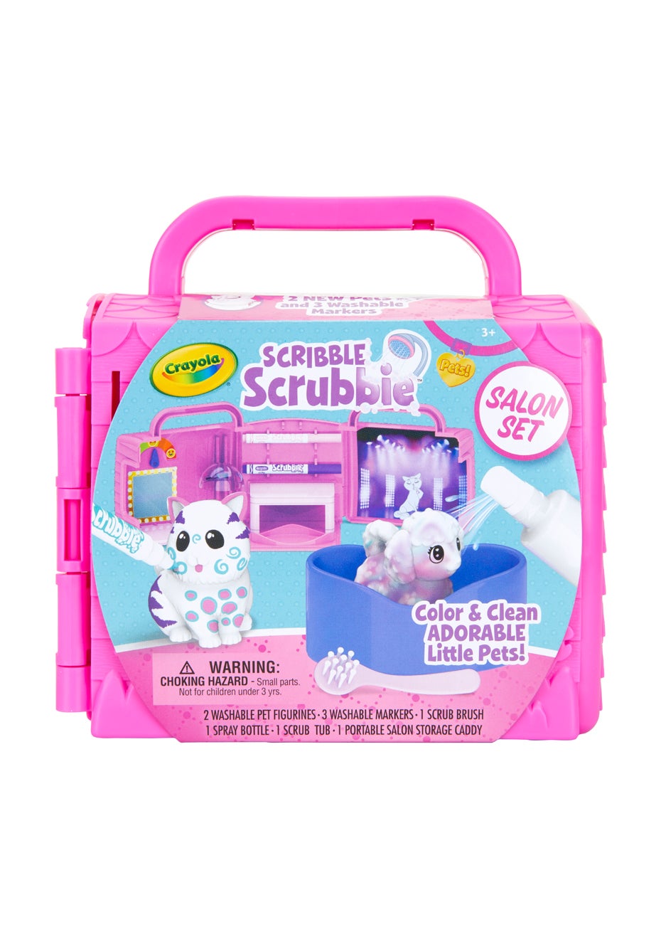 Let your little ones address the grooming needs of their play pets with this with compact and portable scribble scrubbie salon set. Product Details Suitable for ages: 3+ years Includes 2 x washable pet figurines, 3 x washable markers, 1 x scrub brush, 1 x spray bottle, 1 x scrub tub and 1 x portable salon storage caddy Dimensions/Size: 5.81cm (H) x 5.57cm (W) x 5.31cm (D) Material: Plastic and ink Features Salon playset Colour and clean adorable little pets