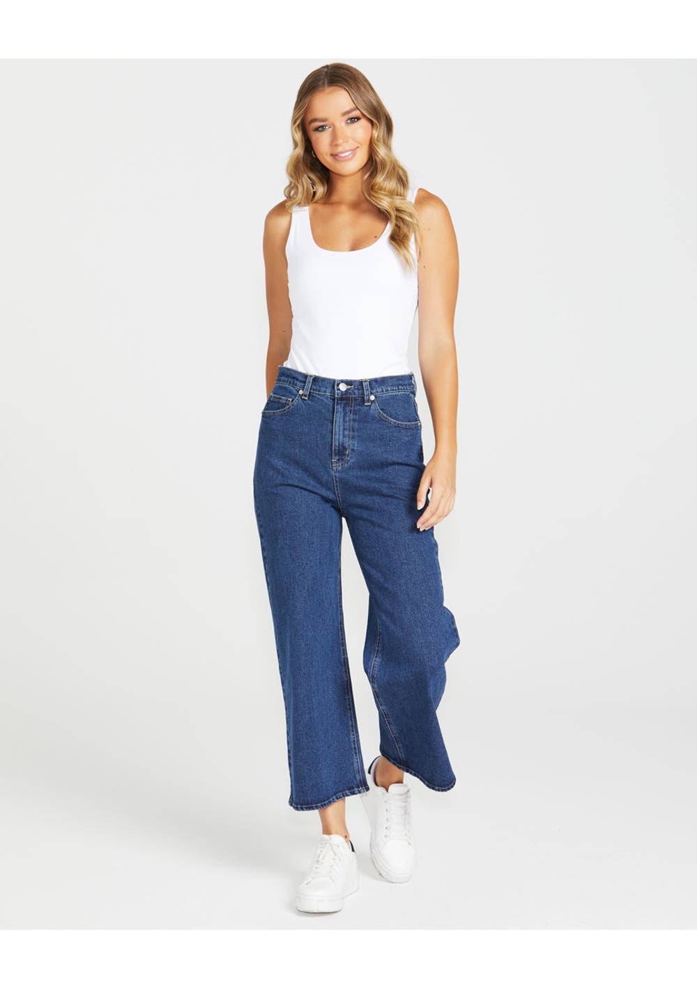 Made with stretchy denim, these jeans will hug your curves and move with you all day long. And with their super high rise, they sculpt and hold your tummy in for a sleek and flattering look. -Super high rise -Straight hip -Wide leg -Cropped Fabric and Care 99% Cotton - 1% Elastane Cool gentle machine wash, do not dry clean