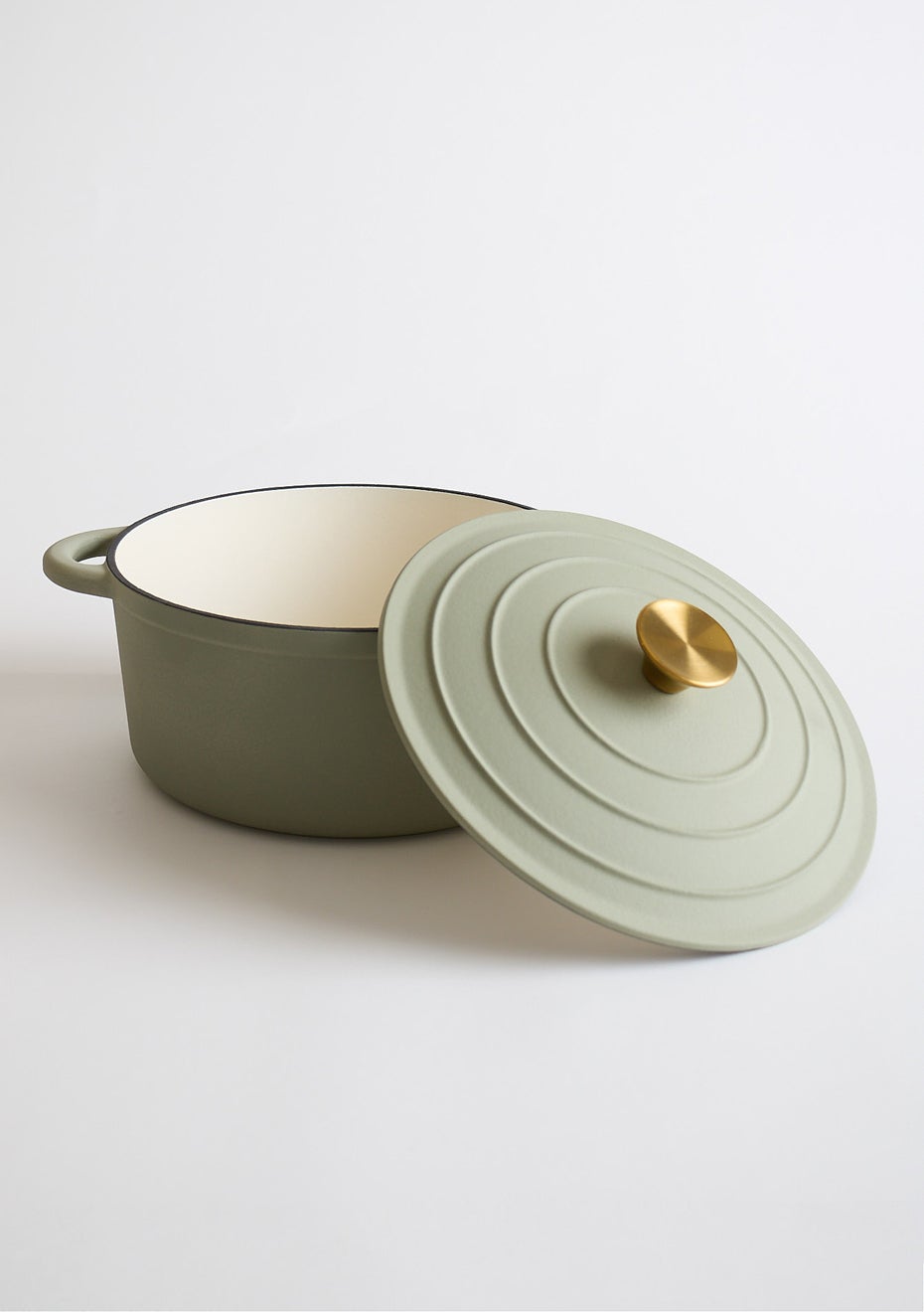 George Collective - Cast Iron Round Casserole 26cm - Matte Sage/Gold LidPREORDER
