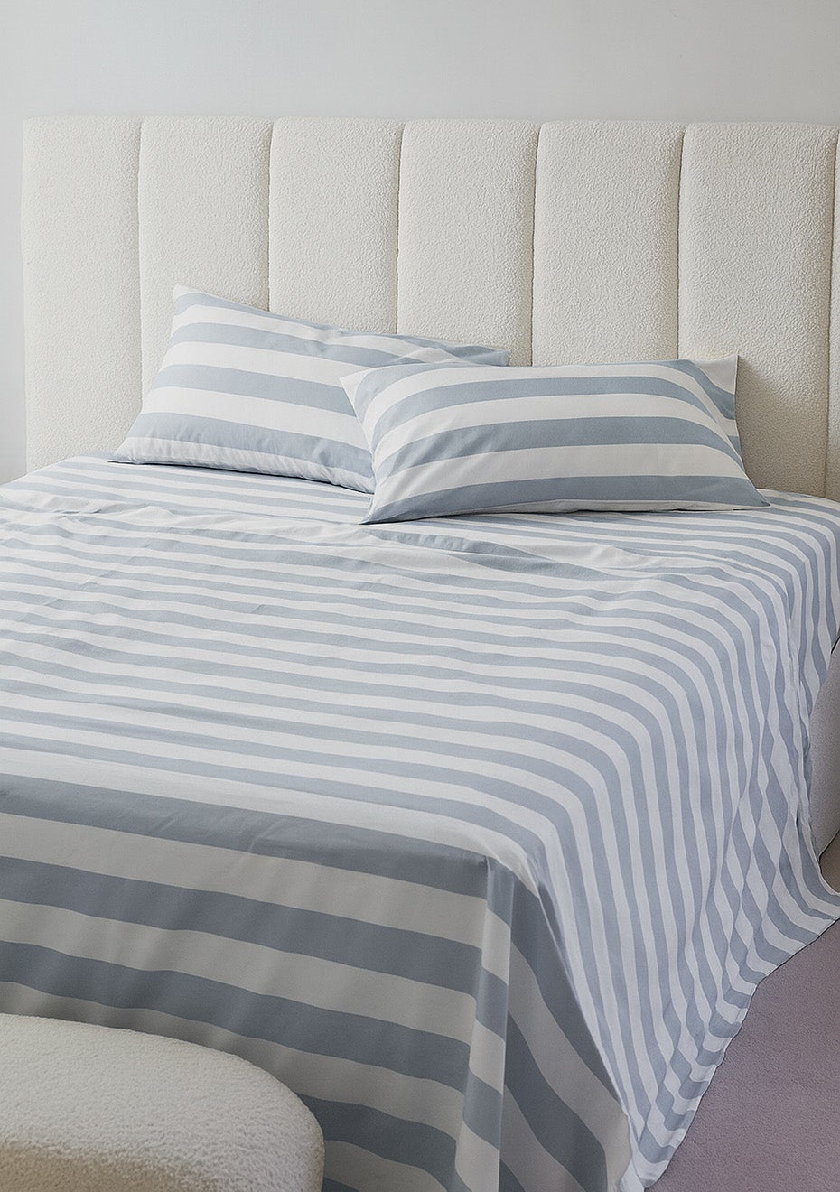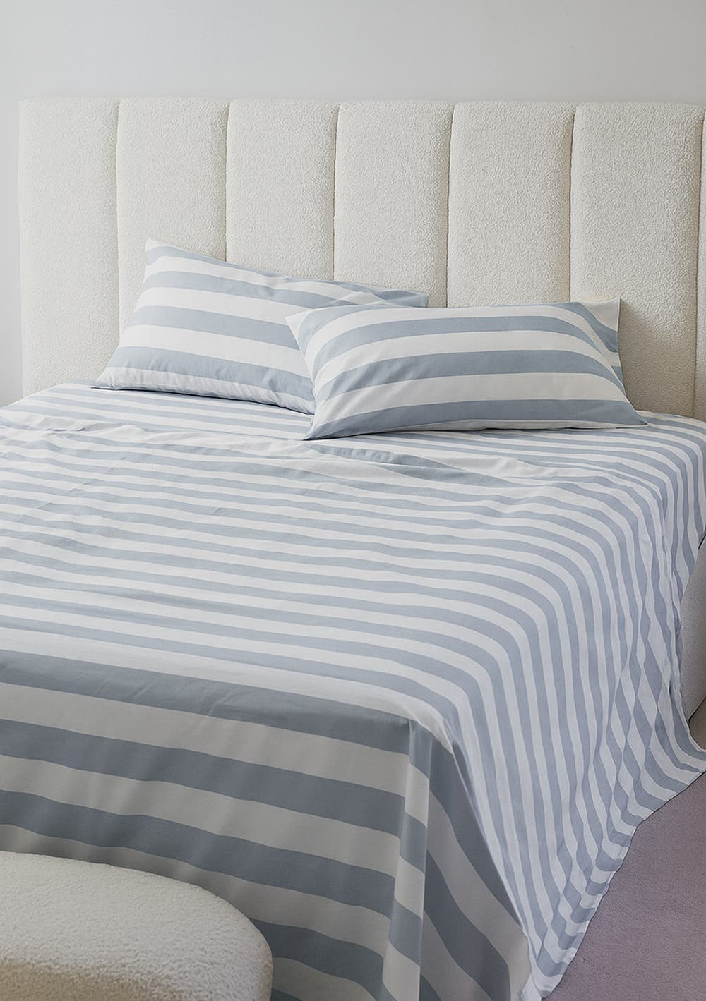 George Collective - 100% Stonewashed Cotton Sheet Set - King - Hamptons Blue Wide StripePREORDER