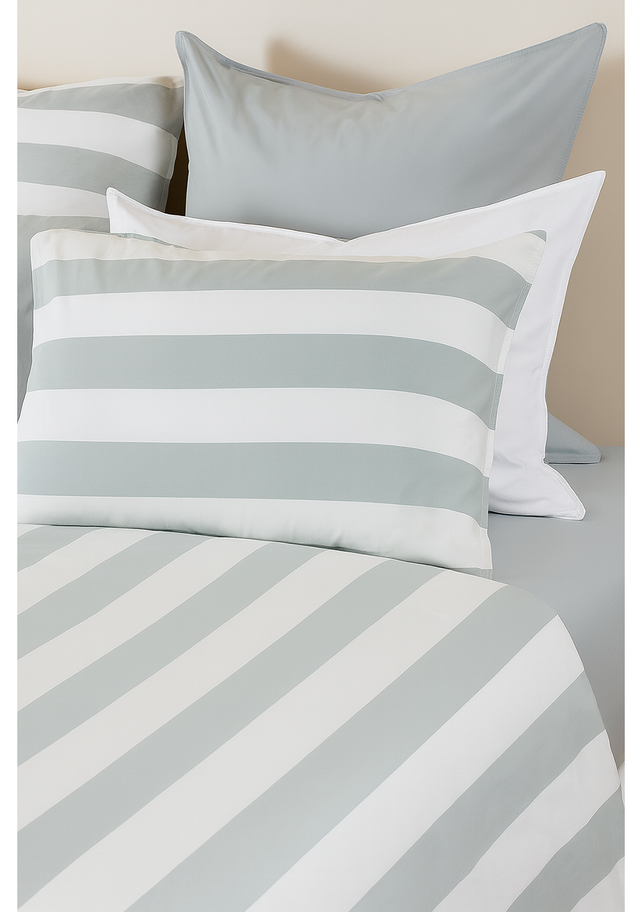 George Collective - 100% Stonewashed Cotton Duvet Cover Set - Super King - Hamptons Blue Wide StripePREORDER
