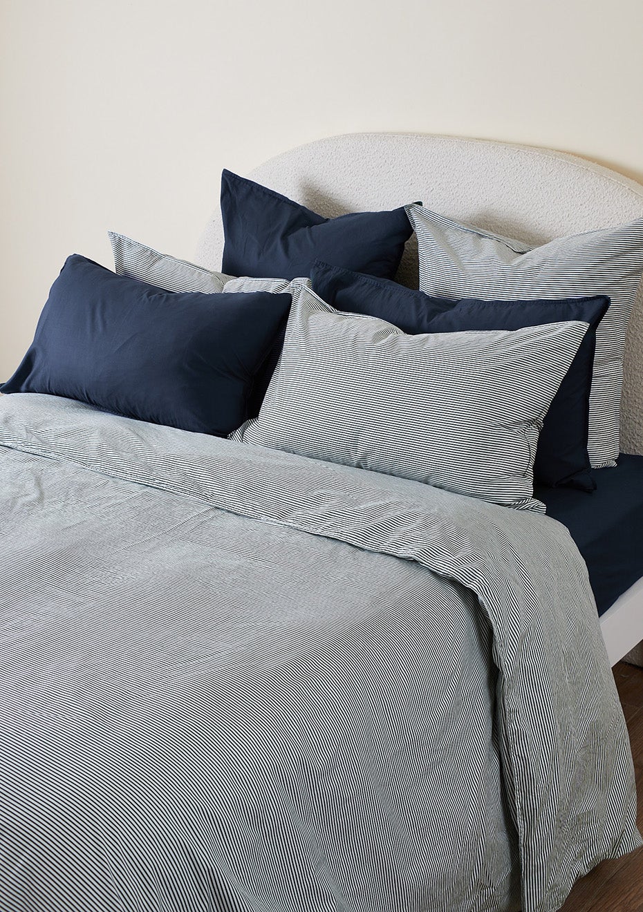 George Collective - 100% Stonewashed Cotton Duvet Cover Set - King Single - Hamptons Navy PinstripePREORDER