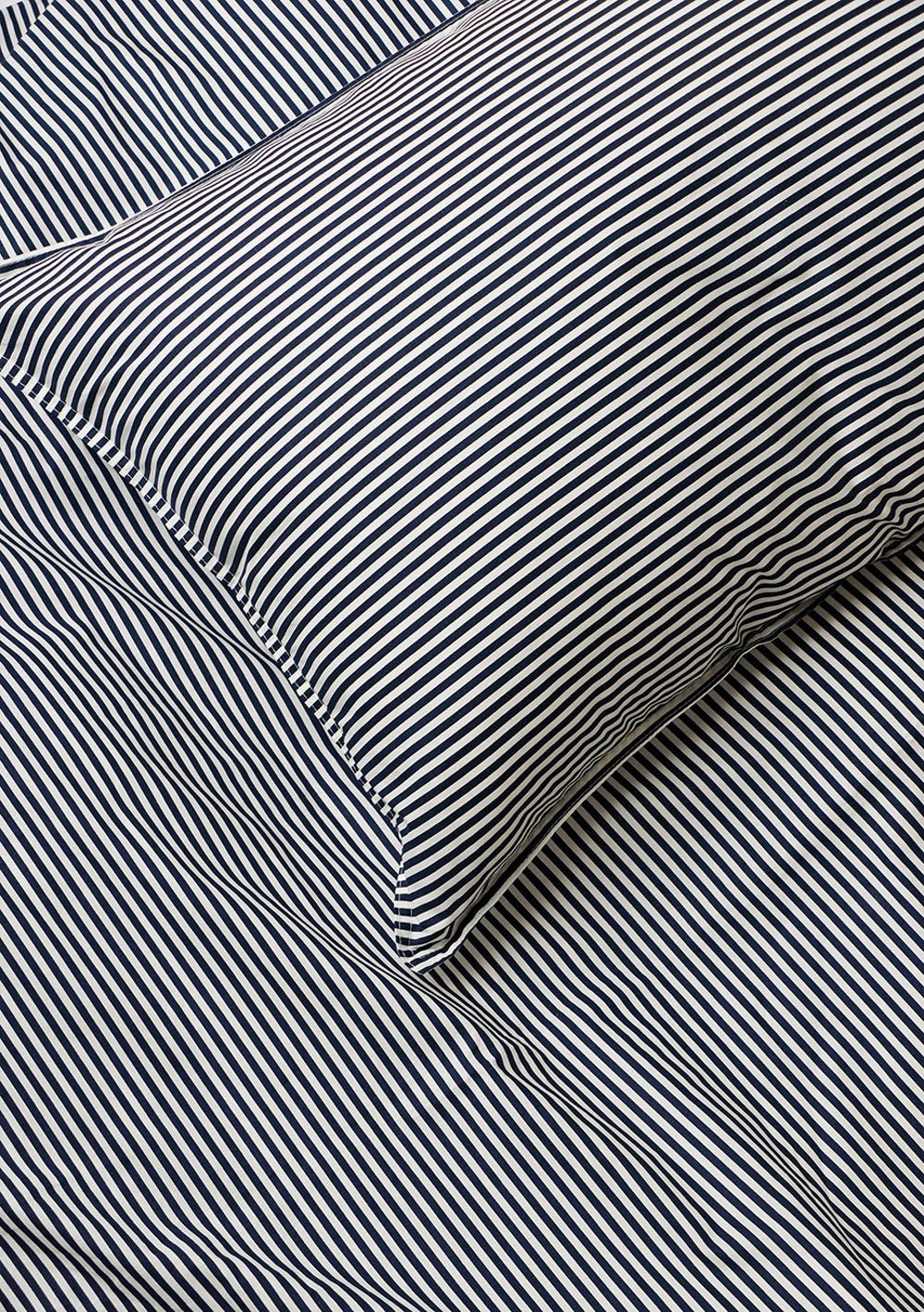George Collective - 100% Stonewashed Cotton Sheet Set - King Single - Hamptons Navy PinstripePREORDER