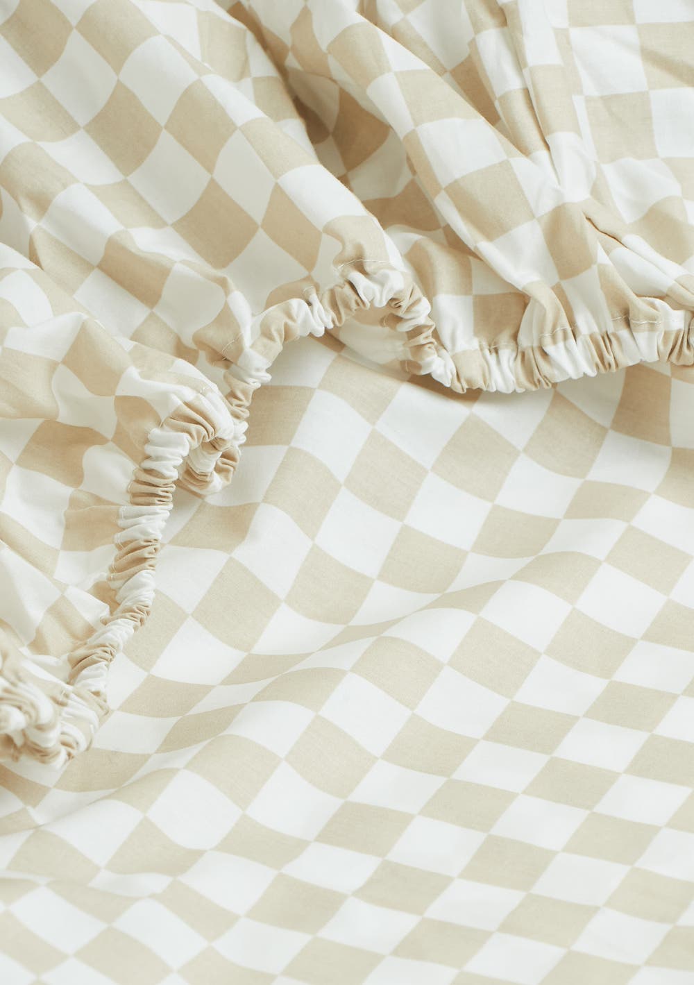 George Collective - 100% Stonewashed Cotton Fitted Cot Sheet - Checkerboard Natural