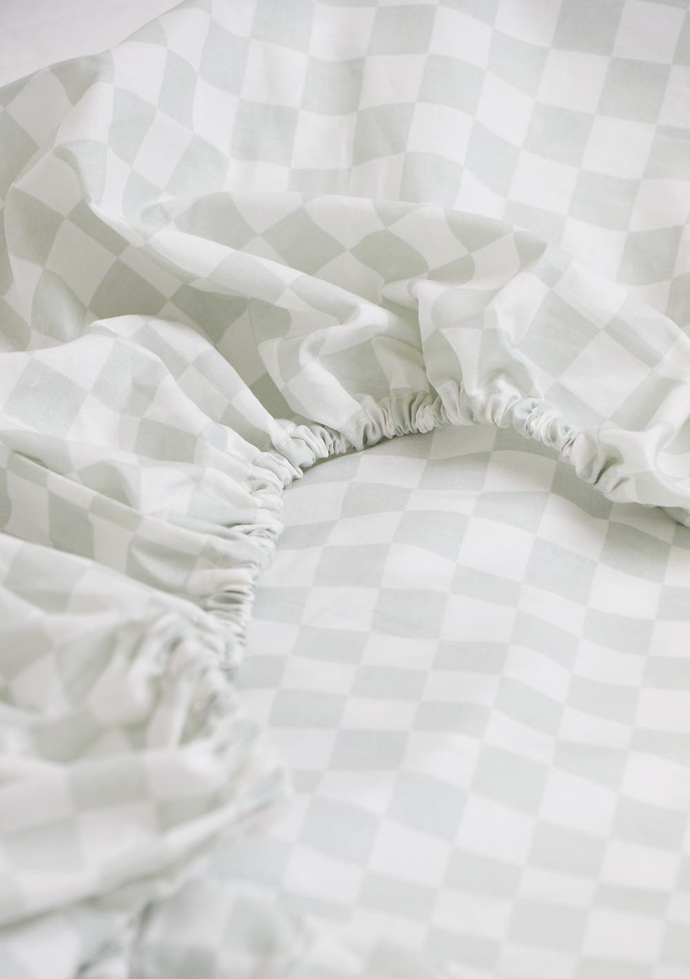 George Collective - 100% Stonewashed Cotton Fitted Cot Sheet - Desert Sage Checker