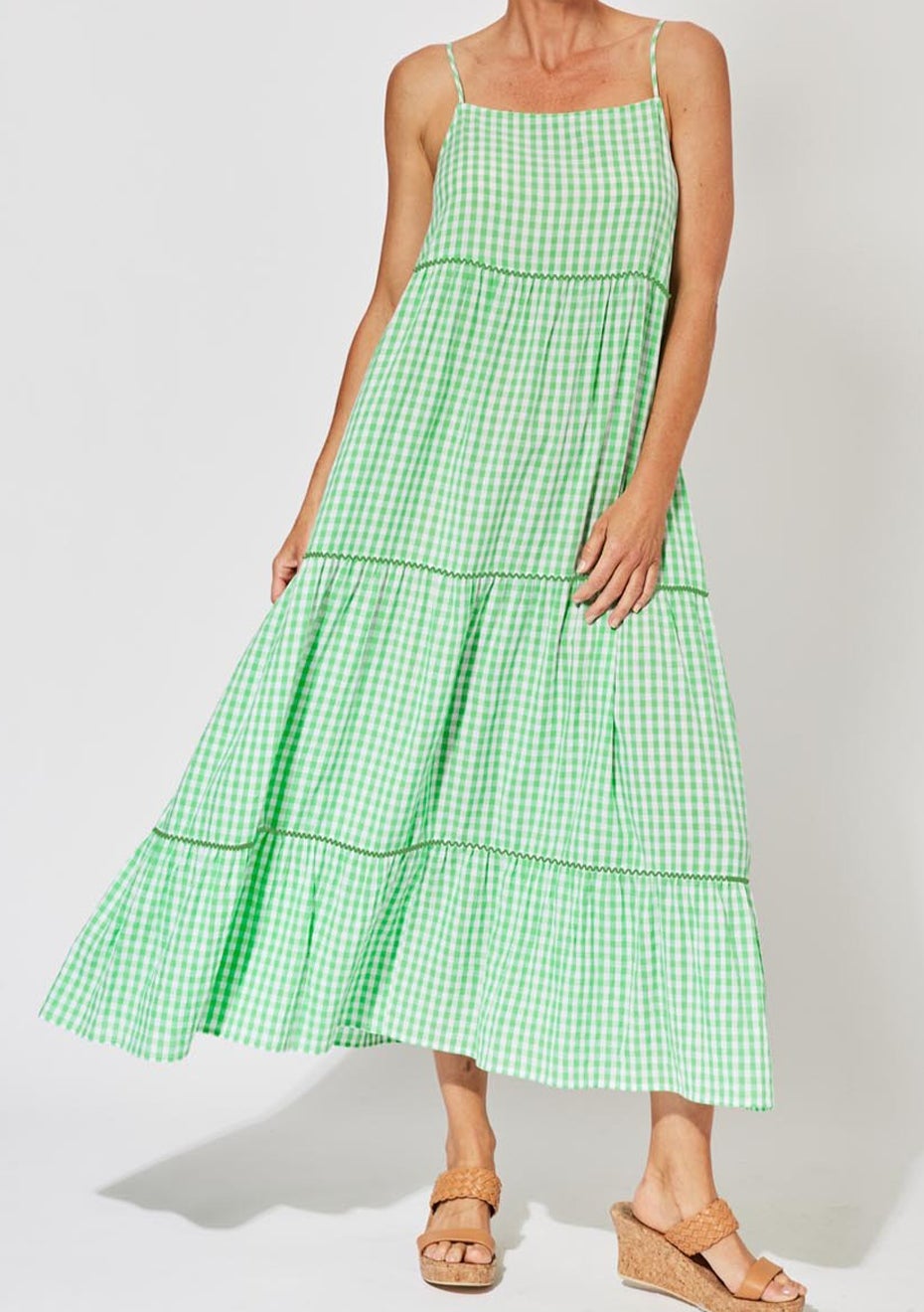 Give your look maximum impact in the Rio Maxi! A summer staple, this linen blend style creates an air of effortless elegance with its free-flowing tiered design. Bright gingham print and embroidered contrasting add a lovely feminine accent, ideal for picnics in the park or long lunches with the girls. Just add sandals and brightly toned accessories to complete the look. FEATURES: Feed and bump friendly Square neck Adjustable straps A-line style Tiered with contrast trim Side pockets Maxi-length 56% Cotton, 37% Viscose, 7% Linen Contrast: 100% Cotton Onceit sources product globally. Onceit displays a strikethrough price based on the Manufacturer's Recommended Selling Price (MRSP) or recommended retail price (RRP) to show a price comparison. The discount percentage reflects the difference between Onceit's selling price and the MRSP or RRP. Suppliers provide these prices as either the official price set by the retailer or brand, which may vary between different retailers and regions or the price they recommend for sale. While we require suppliers to provide evidence of an RRP or MRSP, the product may not have been sold at that price before or recently in New Zealand. NZD RRP or MRSP is provided by the supplier or calculated by using the market spot rate at time of listing, we use this as the strikethrough price and calculate the discount percentage based on the difference between this price and Onceit’s selling price.