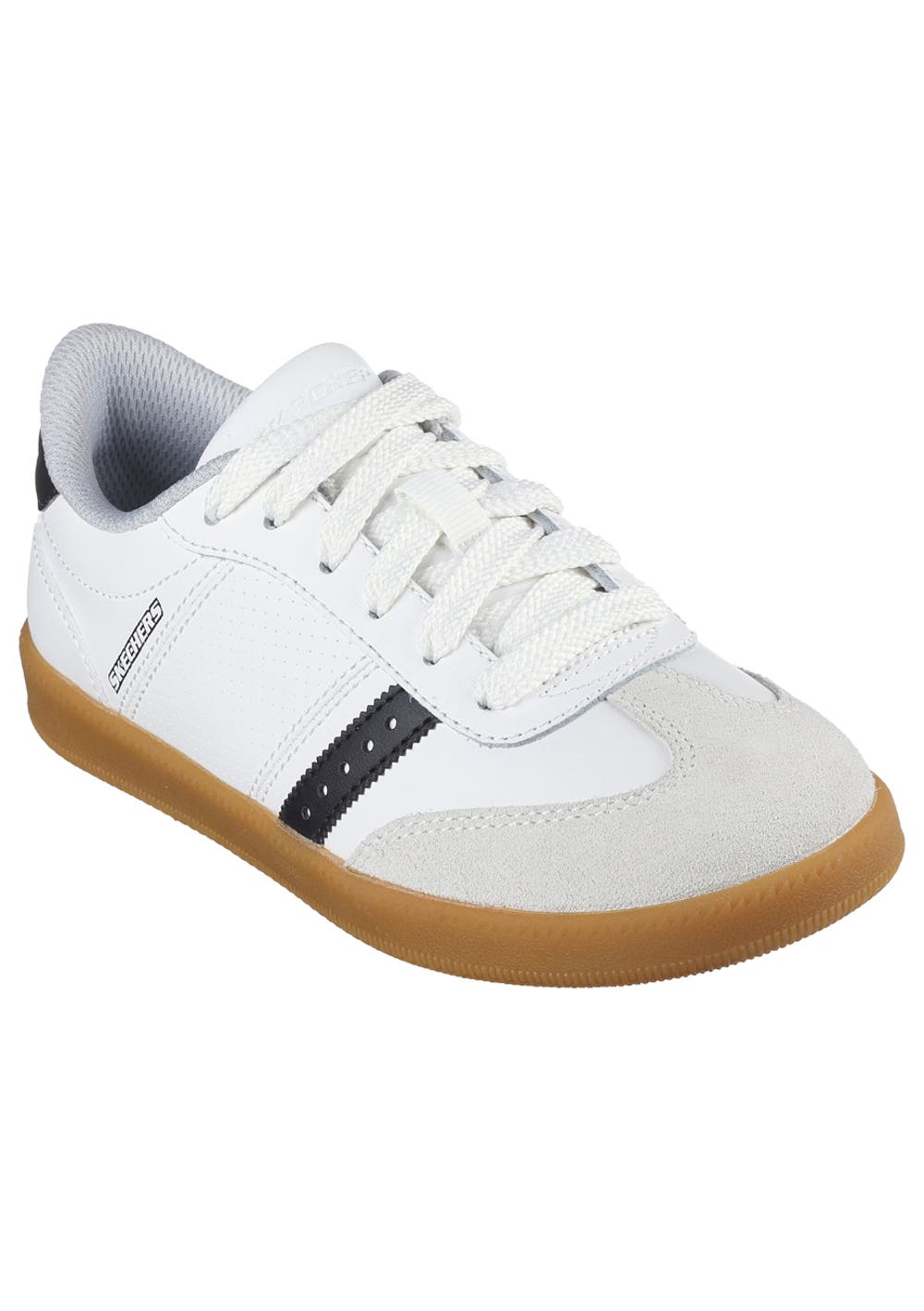 Outfit your kids in throwback flair and style with Skechers Street™ Zinger Street. This lace-up retro design features a synthetic and suede overlay upper with stitching detail, adjustable instep strap, stretch-laced front, durable rubber outsole, and a cushioned comfort insole. Product Features Synthetic and genuine suede overlay upper with stitching detail Retro style sneaker with gore lace front and adjustable instep strap Durable rubber traction outsole 1/2-inch heel height Skechers® logo detail