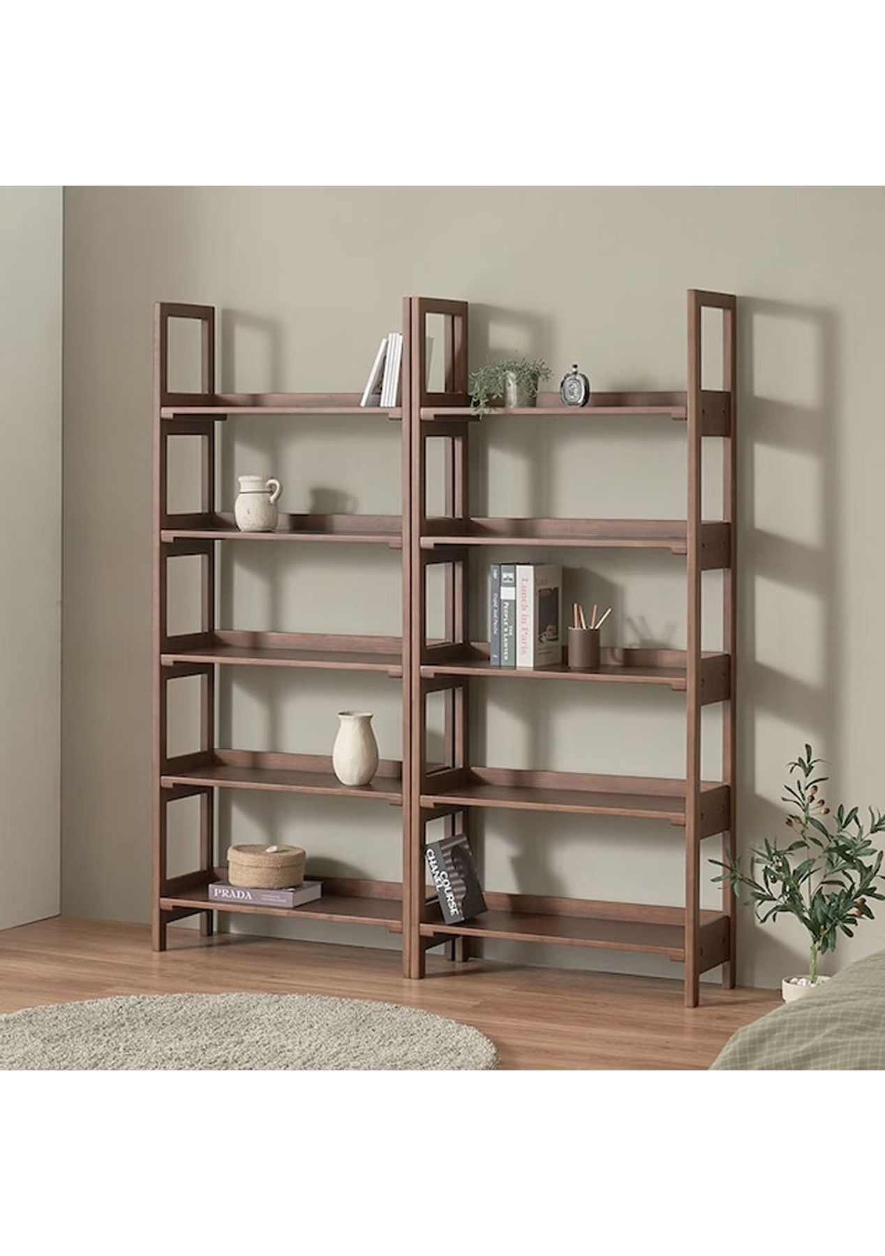 Designed to complement both classic and modern interiors, this ladder-style shelving unit features a natural wood finish and a minimalist open-back structure that makes your room feel more spacious. Product details ‚ Crafted from solid rubberwood for lasting durability and warmth. ‚ Rich walnut colour adds a calm and natural ambience to interiors. ‚ Open-back design visually expands your space while allowing wall colour to show through. ‚ Open-shelf design allows quick access and easy visibility for children or adults. ‚ 5-tier shelving unit provides generous display and storage space. ‚ Each shelf supports up to 15kg, perfect for books, plants, and decor. ‚ A practical and stylish solution for living rooms, bedrooms, or study corners. ‚ Dimensions: W 800 x D 300 x H 1800 mm ‚ Materials: Rubberwood ‚ Assembly Required: No * Please note that the colour can be different from your monitor * Package includes 1 x ODELIS Bookshelf