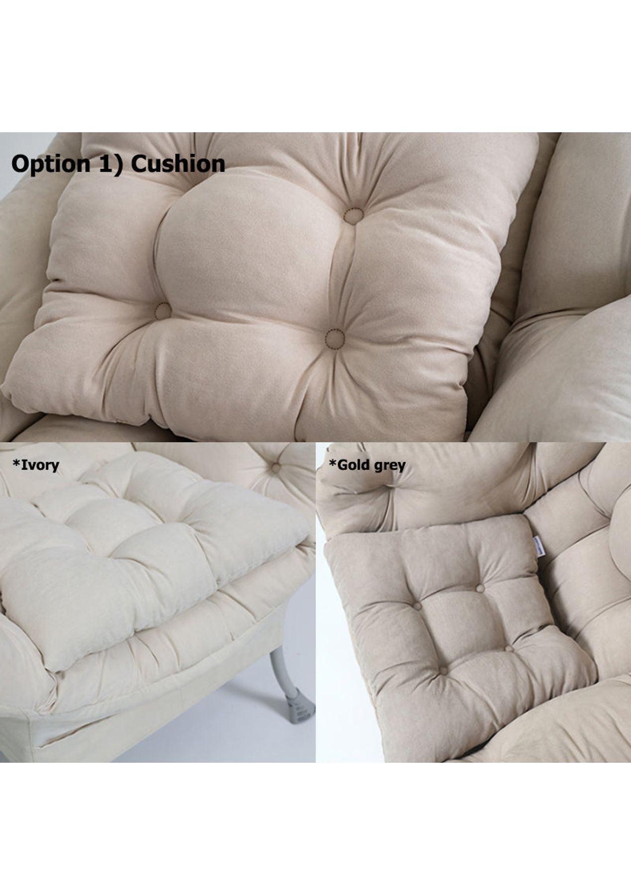 Product details ‚ Sleek and contemporary look‚ Sturdy and durable ‚ Plush cushions provide exceptional comfort and support‚ Removable and washable covers for hassle-free cleaning‚ Suitable for nursing chair‚ Stool included ‚ Dimensions: W 800 x D 690 x H 1050 mm ‚ Weight: 5.6kg‚ Materials: Microsuede‚ Assembly Required: Yes(Simple assembly required)‚ Colour: Ivory , Gold grey * Please note that the colour can be different from your monitor* Package includes 1 x Chair with stool