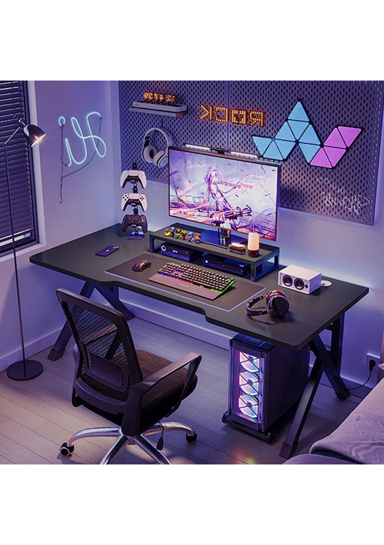Features With a robust build and gamer-friendly design, this desk ensures a stable and comfortable setup for both casual and competitive gaming. ‚ K-Shaped Triangular Legs & Reinforced Frame ‚Äì Enhances balance and structural strength.‚ Heavy-Duty Tabletop ‚Äì Thick surface built to withstand heavy loads.‚ Rounded Corners ‚Äì Smooth edges for added safety and comfort. Product details ‚ Dimension: W 1200 x D 600 x H 740 mm ‚ Materials: MDF, LPM‚ Assembly Required: Yes‚ Colour: Black * Please note that the colour can be different from your monitor* Package includes 1 x Desk