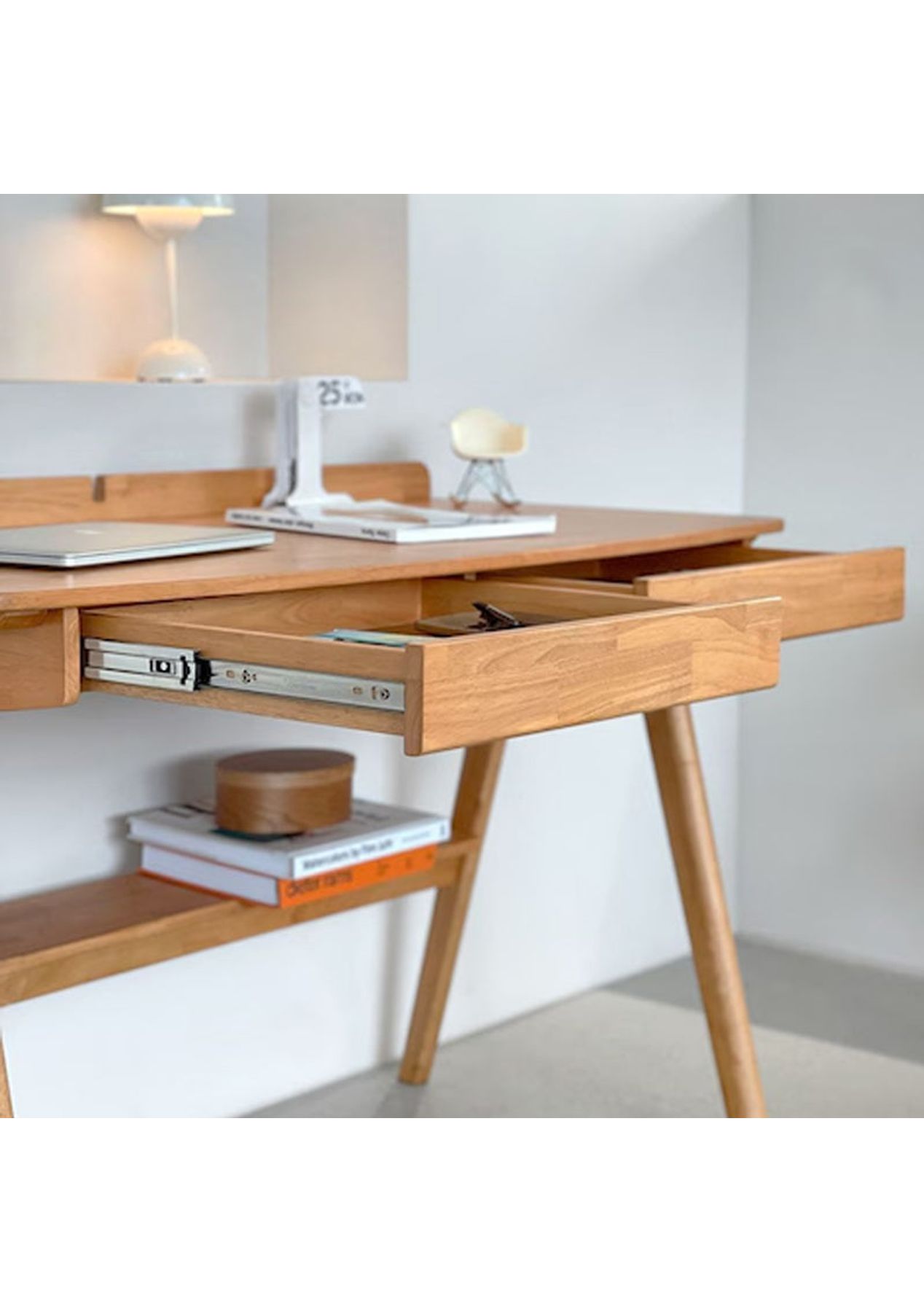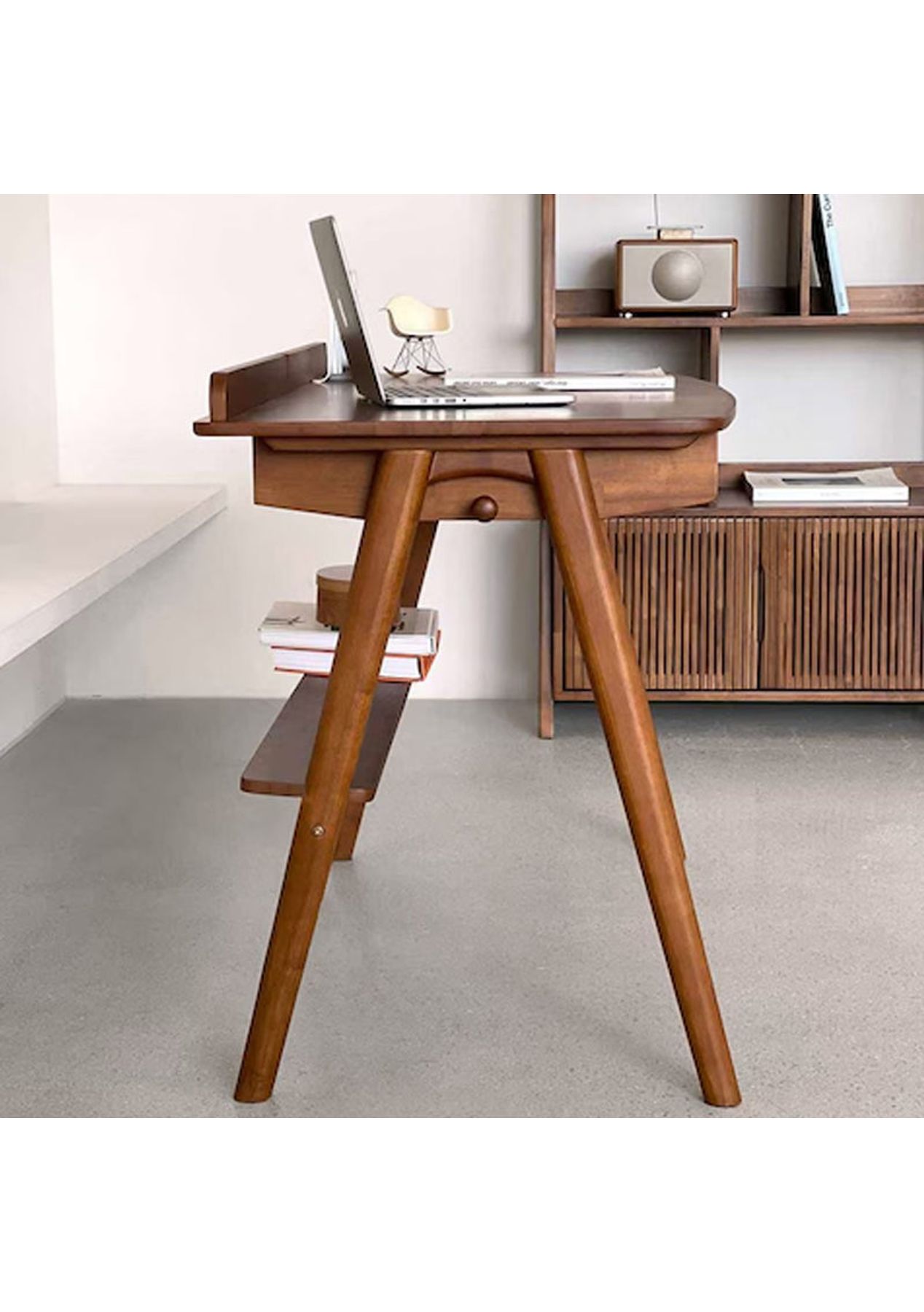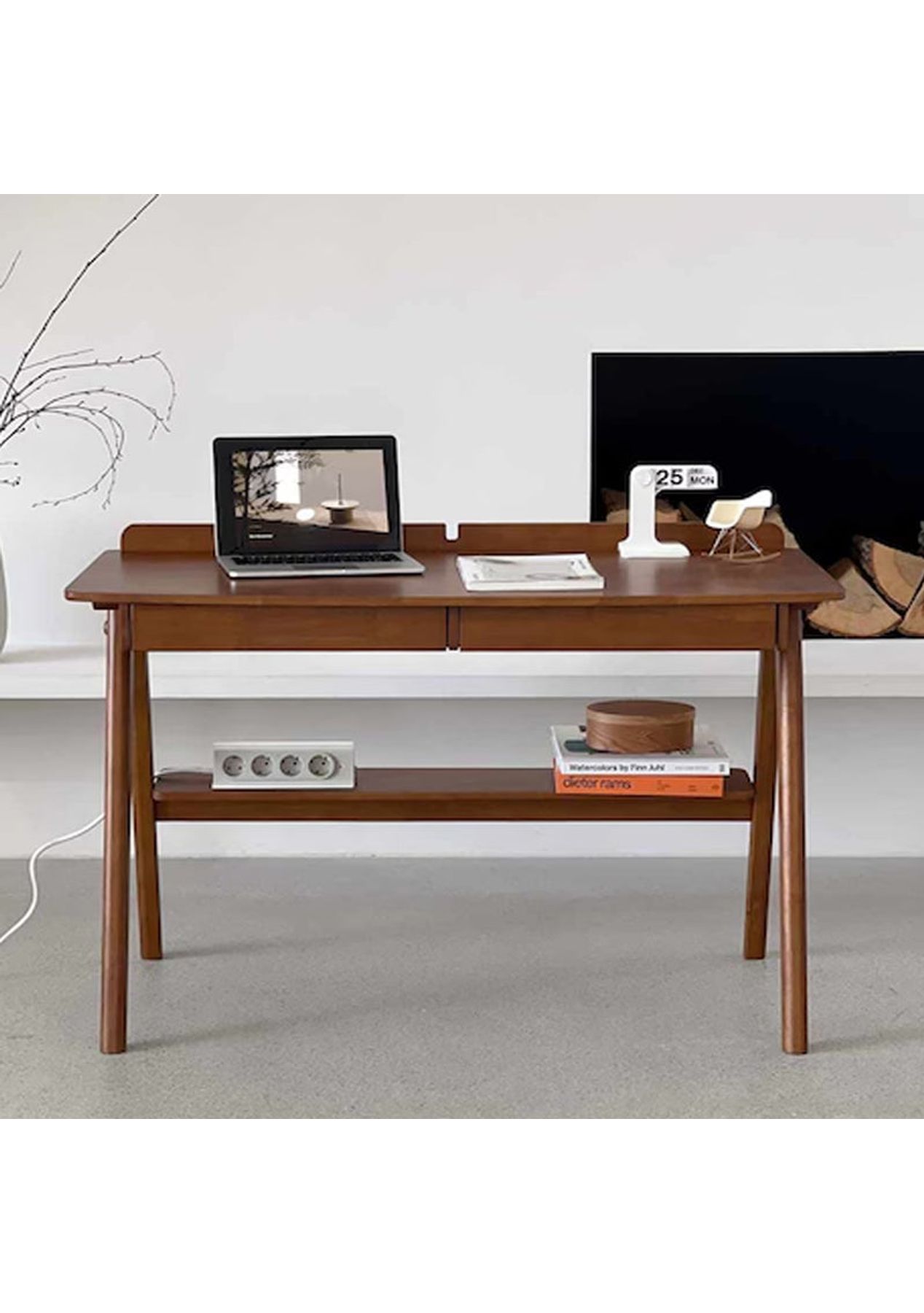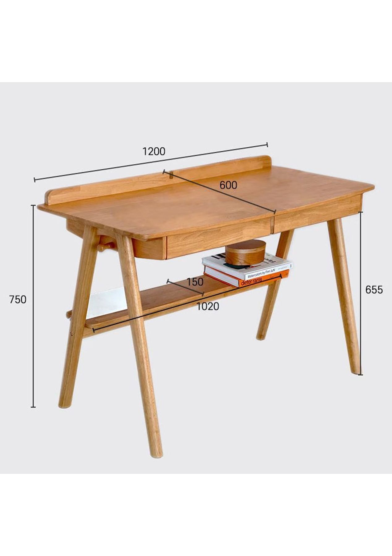 Minimal Wooden Desk with Practical Storage A natural wood desk that blends functionality with timeless charm. Its solid frame, thoughtful storage, and warm finish make it perfect for home offices, study rooms, or small spaces. Features ‚ Neatly store stationery and essentials in the two built-in drawers. ‚ Hooks under both sides of the desk provide a convenient spot for bags or headphones. ‚ Rounded corners offer a softer, safer touch for everyday use. ‚ Crafted from sturdy solid wood for long-lasting durability. ‚ Lower shelf adds extra storage for books and decor. Product details ‚ Dimension: W 1200 x D 600 x H 750 mm ‚ Materials: Rubberwood ‚ Assembly required: Yes (Simple legs assembly required) ‚ Available Colours: Natural, Walnut * Please note that the colour can be different from your monitor * Package includes 1 x Desk(Walnut)
