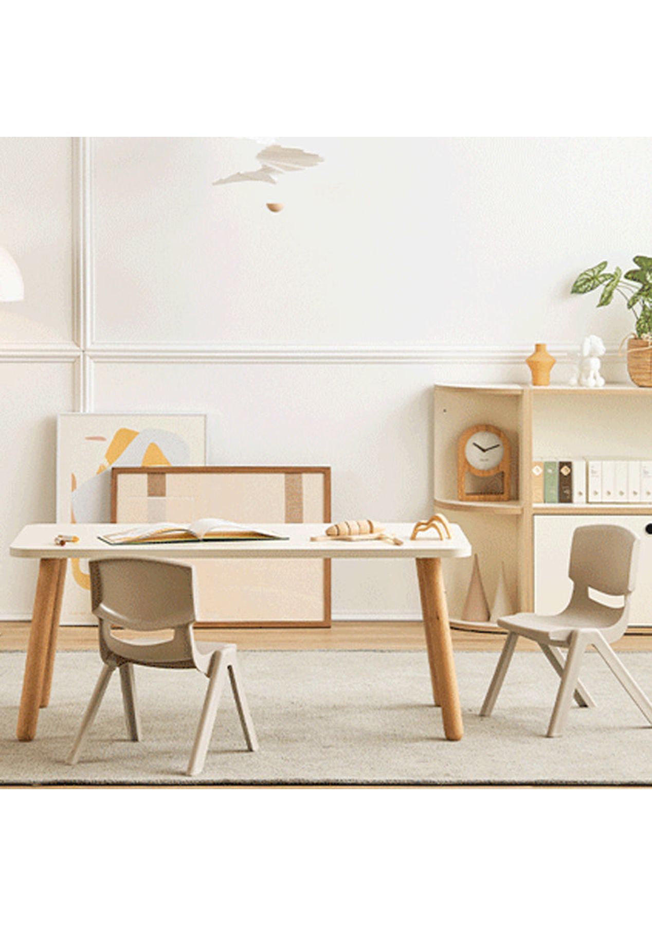 Create a beautiful and functional learning space for your child with this charming kids' table and chair set. Designed to encourage independence, creativity, and concentration, the set blends modern aesthetics with child-friendly features. Whether it's for colouring, reading, snack time, or imaginative play, this sturdy and stylish set is the perfect companion for your little one's daily routine. Features ‚ Made from durable materials with rounded corners for enhanced safety. ‚ Solid wood legs provide excellent stability and long-lasting support. ‚ Smooth tabletop surface is easy to clean and ideal for all kinds of activities. ‚ Chair features a curved backrest and seat for ergonomic comfort. ‚ Lightweight design allows kids to move the chair on their own. ‚ Stackable chair structure makes storage simple and space-saving. ‚ Includes one table and two chairs in a set. ‚ Ideal for toddlers and preschoolers developing independence and focus. Product details ‚ Dimension: Table) W 1200 x D 595 x H 500 mm Chair) W 360 x D 350 x H 530 mm ‚ Materials: LPM, Rubberwood ‚ Assembly required: Table(Simple legs assembly required), Chair(Fully-assembled) ‚ Available Colours: Table) White, Beige, Pink, BlueChair) Grey, Beige, Pink, Blue * Please note that the colour can be different from your monitor * Package includes 1 x 1 Table + 2 chairs