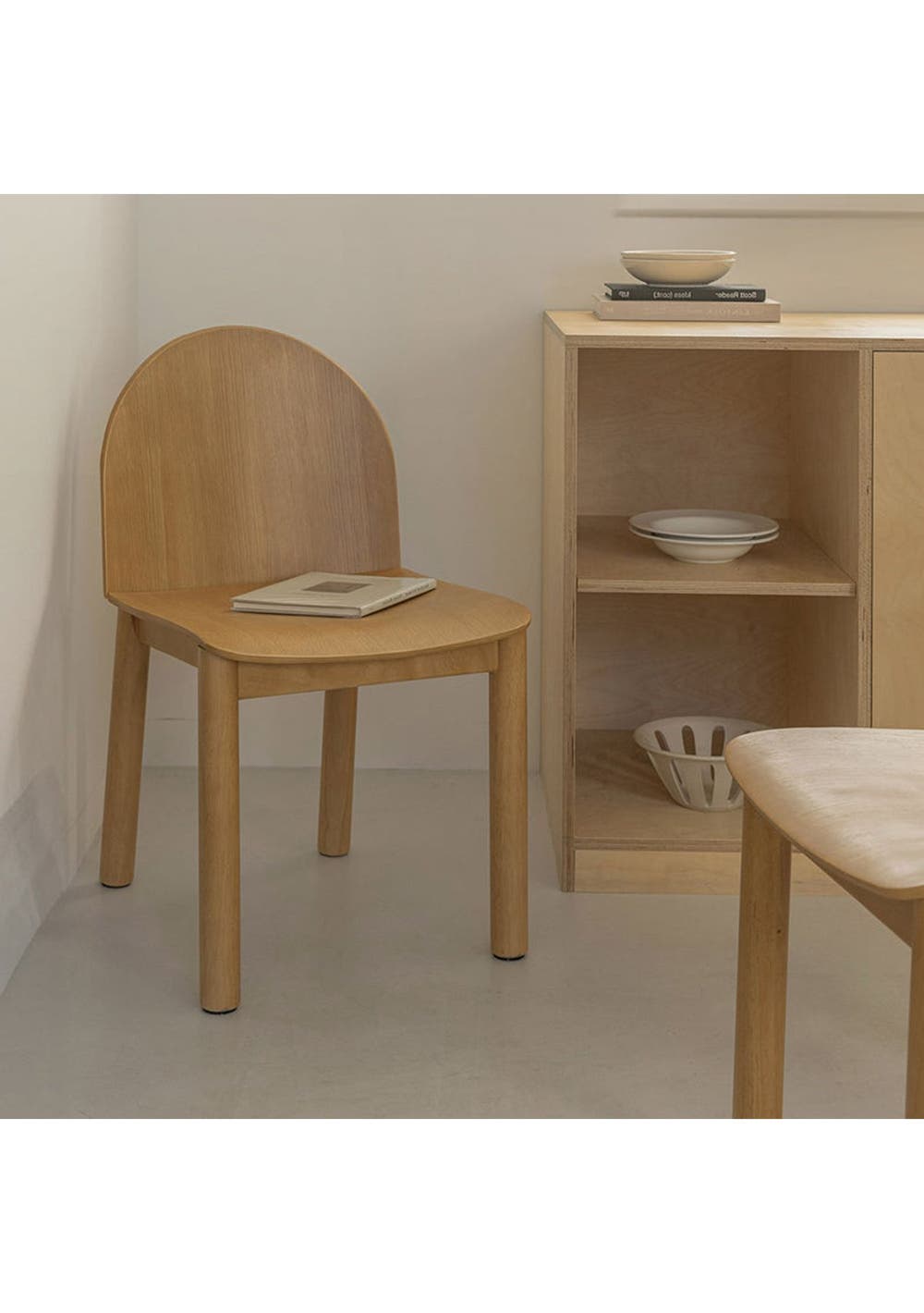 A Sculptural Statement Chair That Balances Comfort and Design Combining soft geometry with the warmth of solid wood, this chair adds a sense of harmony and elegance to any space. The unique arch-shaped backrest and cylindrical leg design come together to form a silhouette that is as inviting as it is iconic. Features ‚ Distinctive half-oval backrest adds visual intrigue and softens the overall design. ‚ Ergonomic curved back gently hugs your spine for enhanced comfort. ‚ Solid wood construction with natural grain brings warmth and a cozy feel to interiors. ‚ Rounded legs offer a playful yet balanced contrast to the structured seat. ‚ Available in warm natural and deep brown finishes to suit various moods and settings. Product details ‚ Dimension: W 460 x D 535 x H 805 mm ‚ Materials: Rubberwood ‚ Assembly Required: No ‚ Colour: Natural * Please note that the colour can be different from your monitor * Package includes 1 x Dining chair