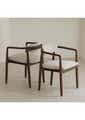 A beautifully curved dining chair that blends form and function. Crafted from solid wood and upholstered in performance fabric, this piece brings comfort, durability, and timeless style to your dining or lounge space. Features ‚ Features a curved silhouette for a soft, inviting profile that hugs the back. ‚ Solid wood frame offers natural warmth and lasting stability. ‚ Upholstered in performance fabric that is stain-resistant, water-repellent, and easy to clean ‚Äî ideal for everyday living. ‚ Gently rounded armrests and smooth lines enhance its modern aesthetic. ‚ Comfortable, ergonomic shape suitable for long dinners or relaxed conversations. Product details ‚ Dimension: W 520 x D 500 x H 720 mm ‚ Materials: Rubberwood, Functional fabric ‚ Assembly Required: No ‚ Available Colour: Walnut * Please note that the colour can be different from your monitor * Package includes 1 x Dining chair