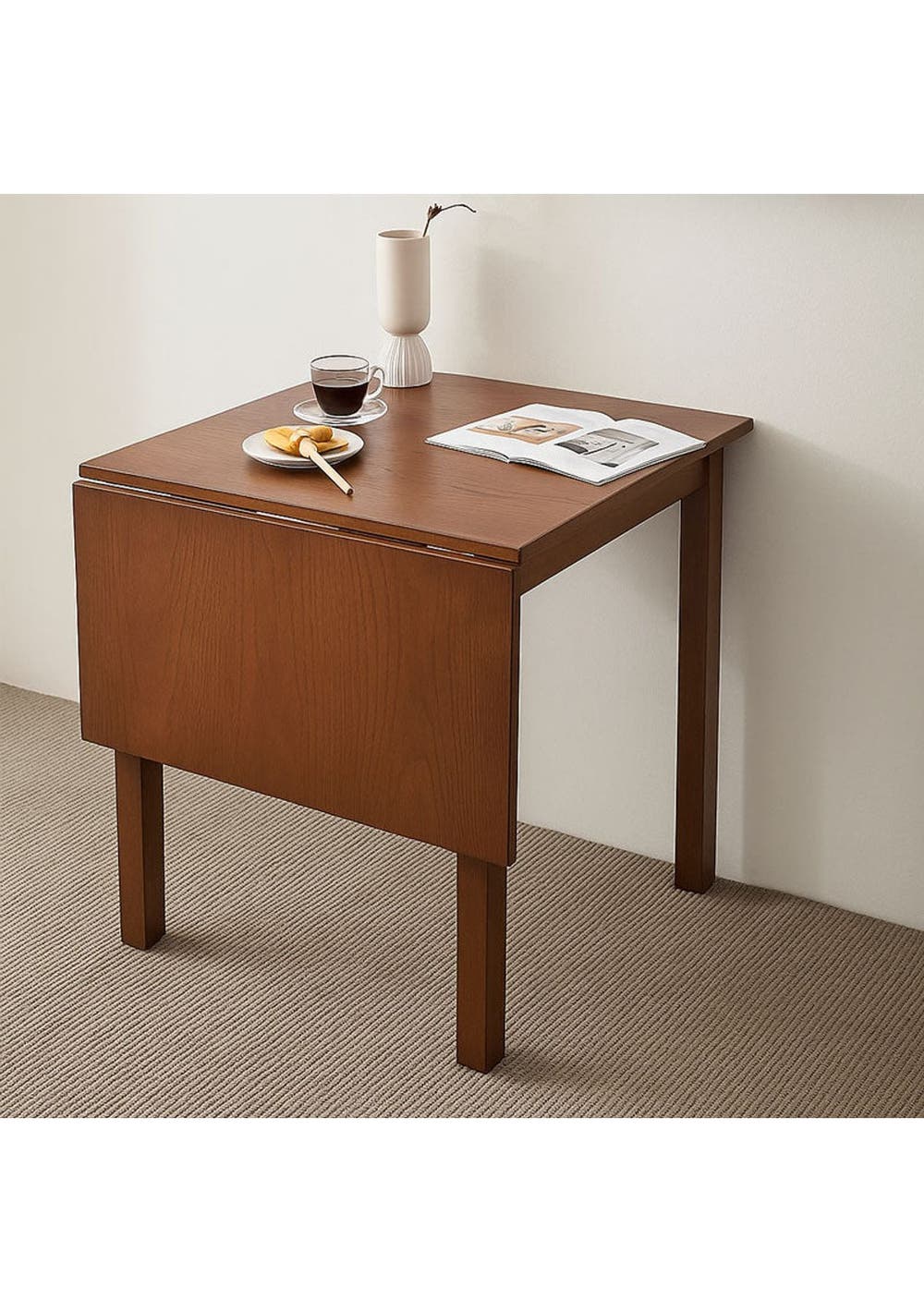 Features ‚ Sleek and versatile design ‚ Easily extends from a 2-seater to a 4-seater ‚ Perfect for compact spaces and small apartments ‚ Modern style that complements any interior ‚ Convenient foldable and extendable features Product details ‚ Dimension: W 775 ~1200 x D 750 x H 740 mm ‚ Materials: Rubberwood, MDF ‚ Assembly Required: Yes(Simple Legs Assembly Required) ‚ Colour: Walnut, Natural * Please note that the colour can be different from your monitor * Package includes 1 x Dining table