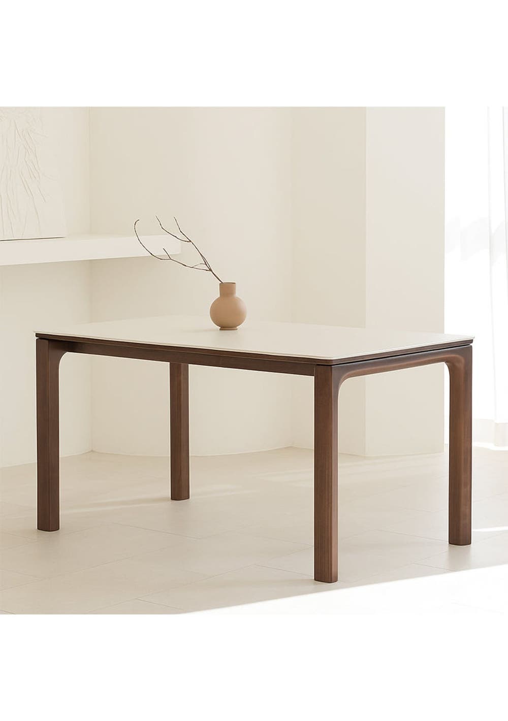 Crafted with solid rubberwood and a high-durability ceramic top, this dining table offers timeless elegance, everyday functionality, and a balanced form that suits both classic and modern homes. Features ‚ Built with solid rubberwood, known for its strength and natural wood grain beauty. ‚ Tabletop features a premium ceramic surface that is heat-resistant, scratch-resistant, and easy to clean. ‚ Warm wood tones bring a sense of comfort and classic charm to any dining space. ‚ Bold, squared legs and reinforced wooden crossbars provide excellent stability and support. ‚ Eco-friendly ceramic top is produced at high temperatures for enhanced durability. Product details ‚ Available sizes: W 1400 x D 800 x H 740 mm W 1600 x D 800 x H 740 mm W 1800 x D 800 x H 740 mm ‚ Materials: Rubberwood, Porcelain ceramic‚ Assembly Required: Yes(Simple Legs Assembly Required)‚ Available Colour: Walnut‚ Available sizes: 1400mm, 1600mm, 1800mm * Please note that the colour can be different from your monitor * Package includes 1 x Dining table