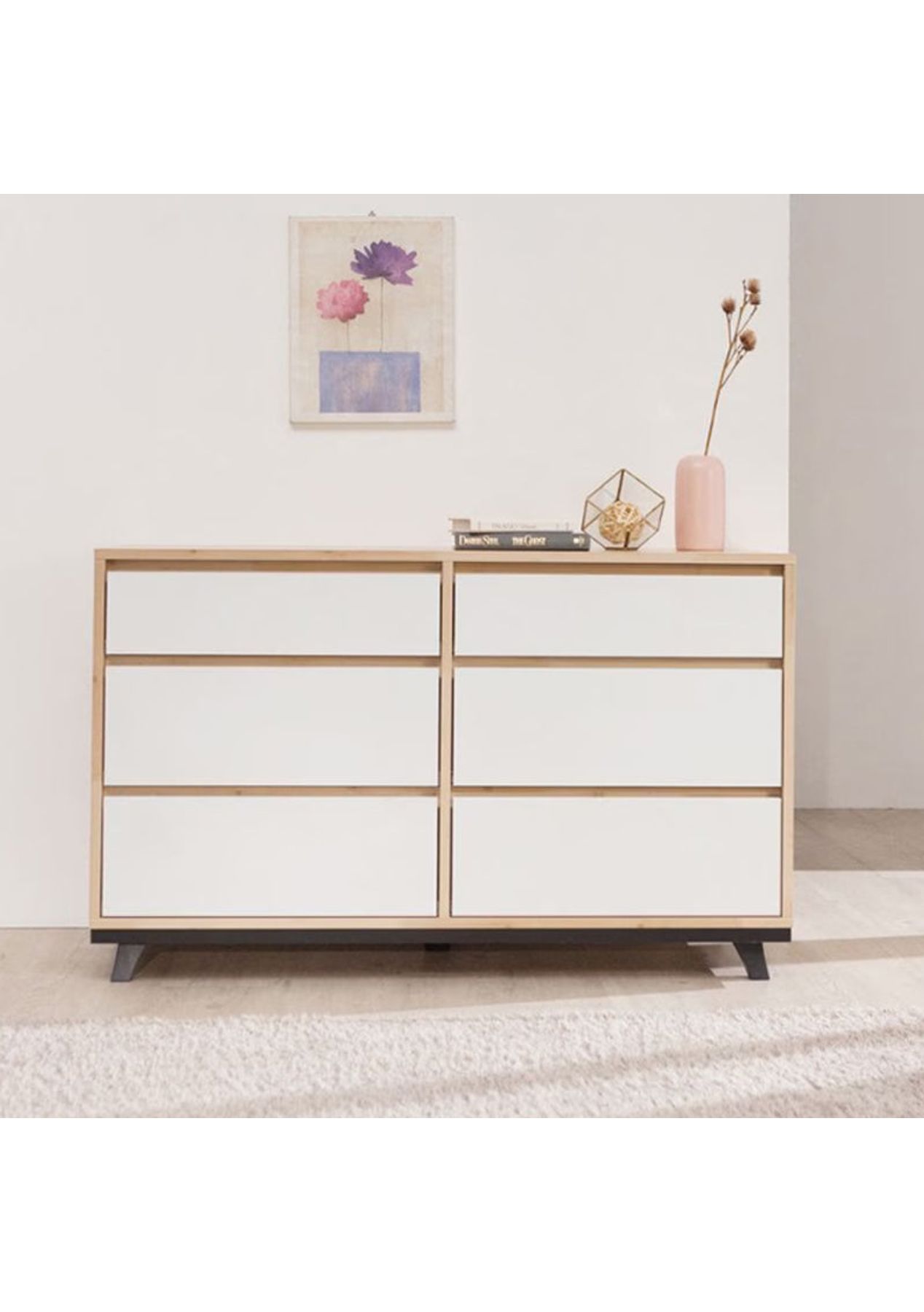 FRANCIS 6 Drawers Lowboy - Acacia & White