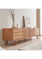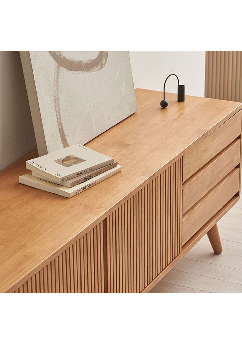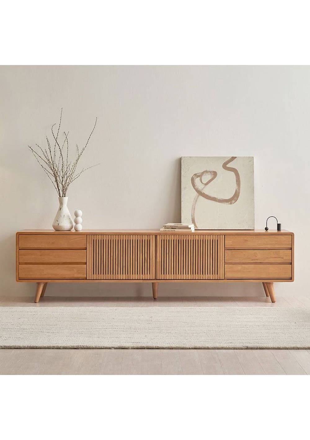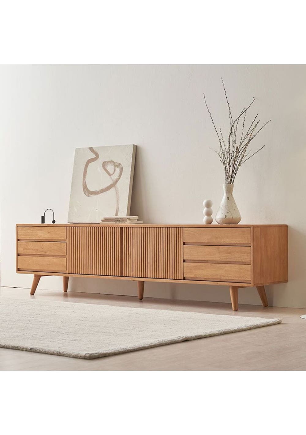 Features: ‚ Modern and simple design ‚ Sturdy and durable ‚ Wide storage space ‚ Handless door & drawer ‚ Round edge Product details: ‚ Dimensions: W 2000 X D 400 X H 510 mm ‚ Materials: Rubber wood, Ball rail ‚ Assembly Required: Yes(Simple Leg or Frame Assembly Required) ‚ Colour: Natural wood * Please note that the colour can be different from your monitor * Package includes 1 x Entertainment Unit