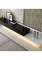 Features:‚ Modern and simple design‚ Sturdy and durable‚ Extendable‚ Handless drawers‚ LED light‚ Select the Left or Right power socketProduct details:‚ Dimensions: W 2300 ~ 3300 X D 415 X H 350 mm‚ Materials: LPM, MDF, PB, Ball rail‚ Assembly required: Yes(Simple base & back board assembly required)‚ Colour: Black & White* Please note that the colour can be different from your monitor* Package includes 1 x Entertainment Unit