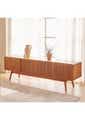Features:‚ Modern wood design‚ Unique frame‚ Sturdy and durable‚ Wide storage space‚ Handless door‚ Soft closing door Product details ‚ Dimensions: W 2000 X D 320 X H 550 mm‚ Materials: Rubber tree, MDF, Steel‚ Finish: Semit-matt‚ Assembly Required: Yes(Simple Leg or Frame Assembly Required)‚ Colour: Light walnut * Please note that the colour can be different from your monitor* Package includes 1 x Entertainment Unit