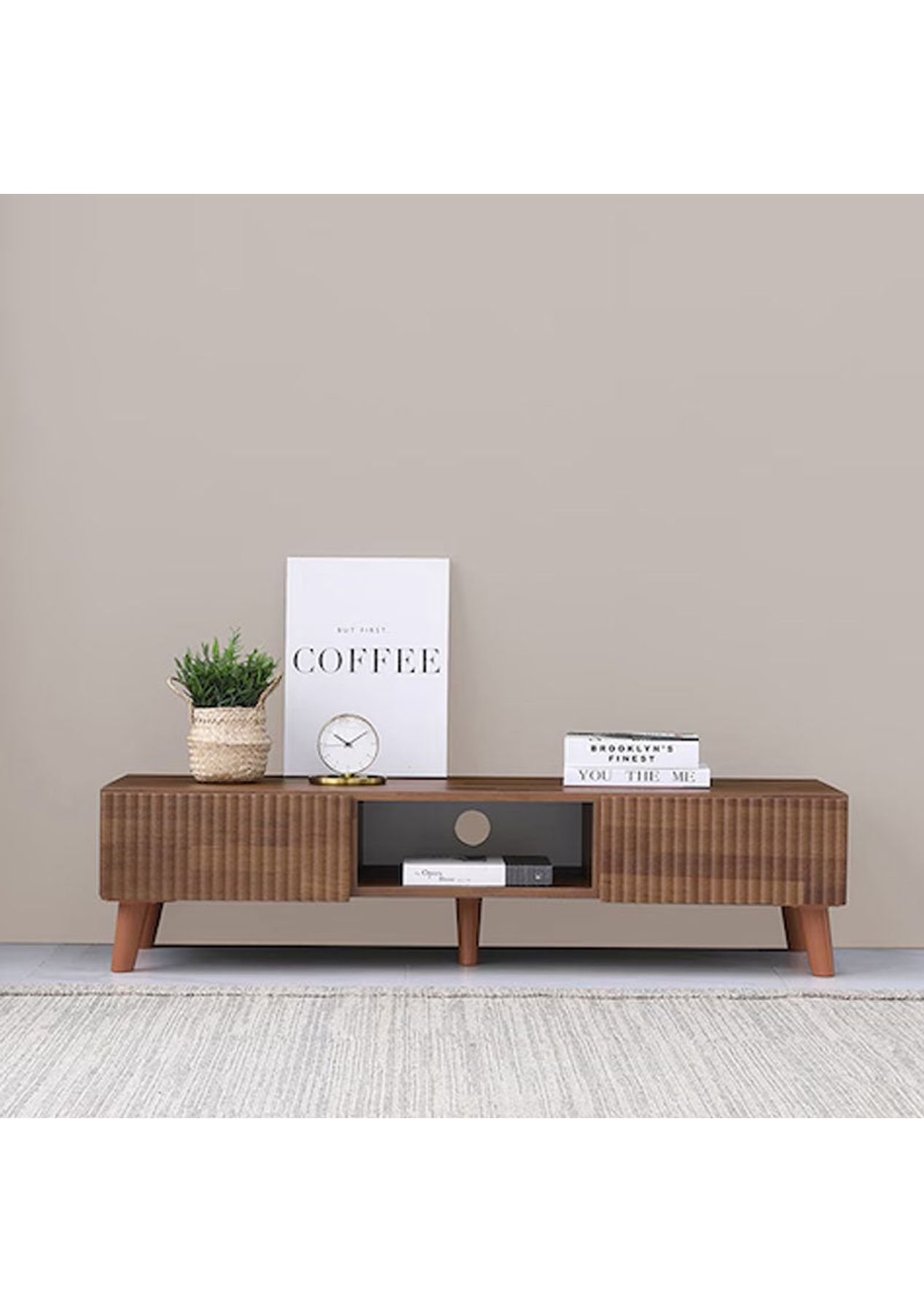 CLEARANCE (T&C) Features ‚ Stylish design & colour ‚ Tambour board design drawers ‚ Smooth & Safe Rails ‚ Neat Cable Management Product Details ‚ Dimension: W 1200 x D 413 x H 295 mm W 391 x D 385 X H 140mm (Inside of the middle shelf) ‚ Materials: MDF, PB ‚ Assembly Required: Yes(Simple legs assembly required) ‚ Colour: White * Please note that the colour can be different from your monitor * Package includes 1 x Entertainment Unit