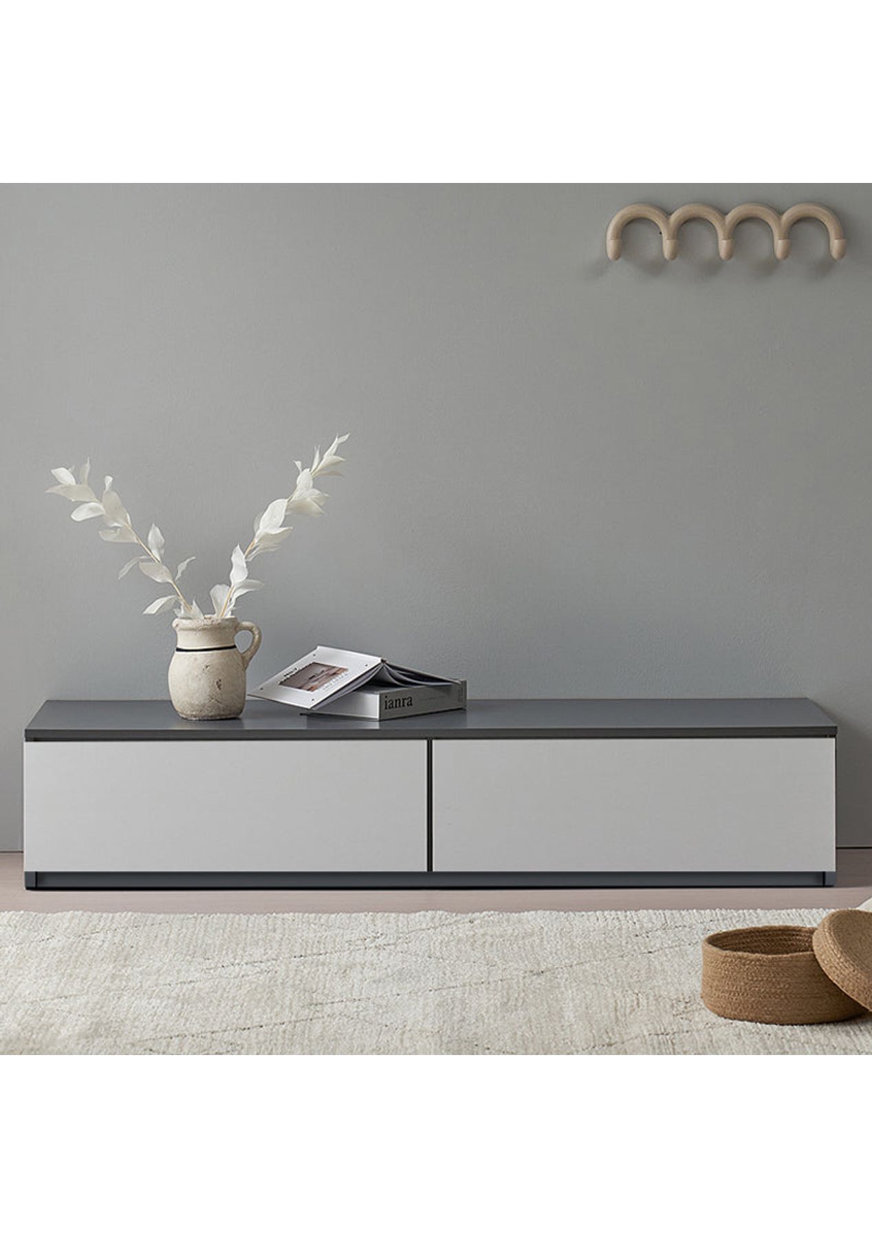A low-profile TV cabinet that combines minimalist design with smart storage. Its clean, handle-free look makes it perfect for modern interior. Features ‚ Handleless design for a sleek, modern appearance ‚ Low-height structure adds a calm, grounded atmosphere to the room ‚ Easy to pair with various home decor styles ‚ Ideal for minimalist or compact living spaces Product Details ‚ Dimension: W 1200 x D 300 x H 265 mm ‚ Materials: MDF, PB ‚ Assembly Required: No ‚ Colour: Grey & white * Please note that the colour can be different from your monitor * Package includes 1 x Entertainment Unit