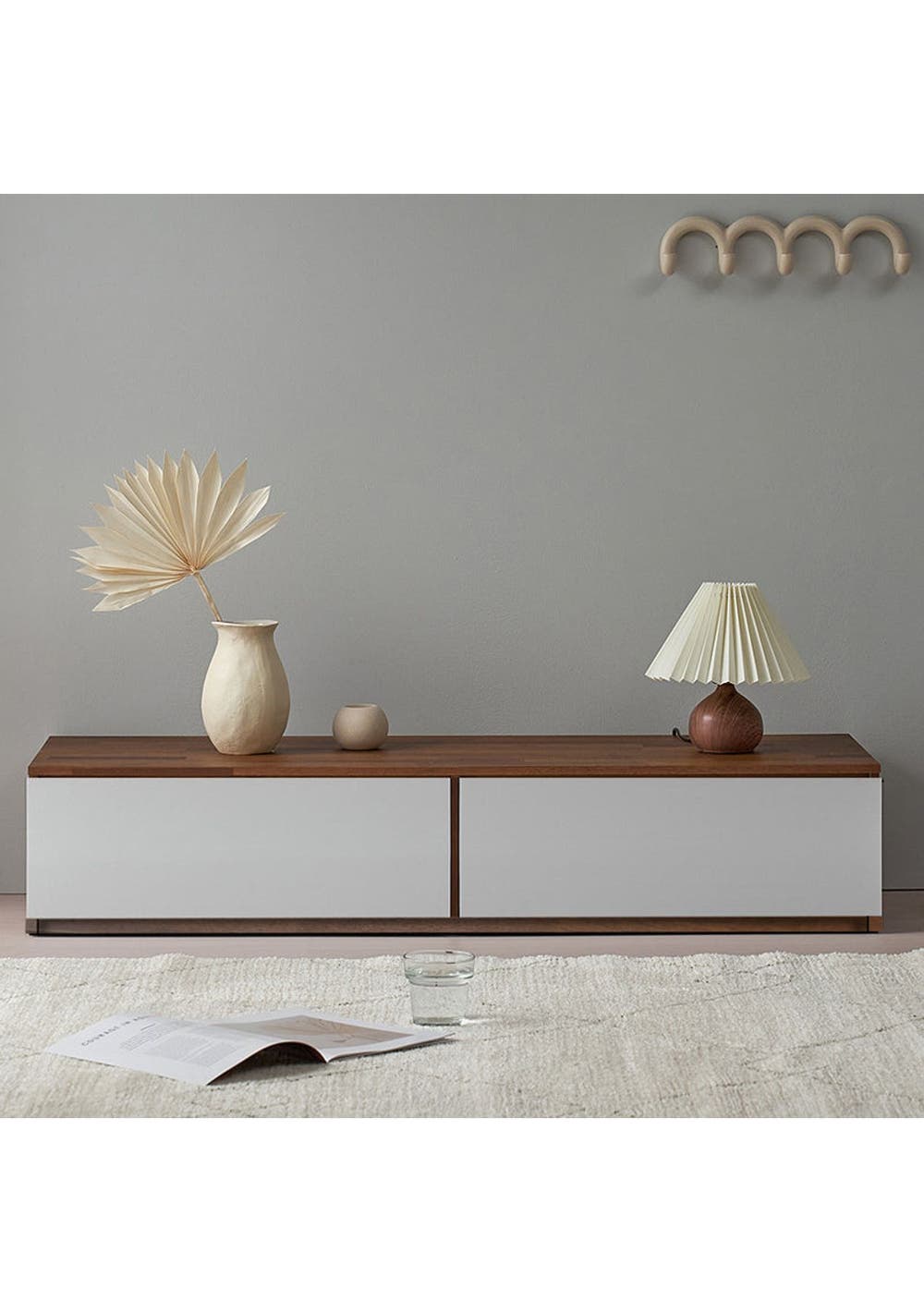 A low-profile TV cabinet that combines minimalist design with smart storage. Its clean, handle-free look makes it perfect for modern interior. Features ‚ Handleless design for a sleek, modern appearance ‚ Low-height structure adds a calm, grounded atmosphere to the room ‚ Easy to pair with various home decor styles ‚ Ideal for minimalist or compact living spaces Product Details ‚ Dimension: W 1200 x D 300 x H 265 mm ‚ Materials: MDF, PB ‚ Assembly Required: No ‚ Colour: Walnut & white * Please note that the colour can be different from your monitor * Package includes 1 x Entertainment Unit