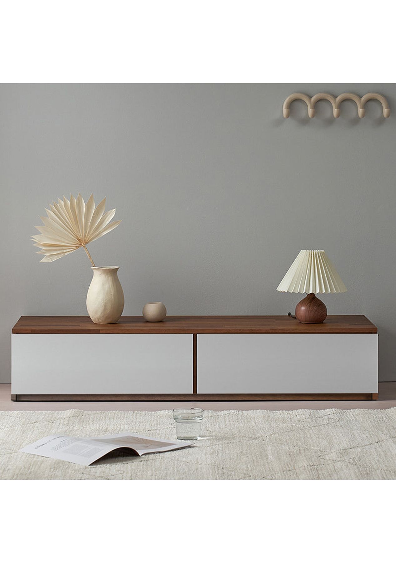 A low-profile TV cabinet that combines minimalist design with smart storage. Its clean, handle-free look makes it perfect for modern interior. Features ‚ Handleless design for a sleek, modern appearance ‚ Low-height structure adds a calm, grounded atmosphere to the room ‚ Easy to pair with various home decor styles ‚ Ideal for minimalist or compact living spaces Product Details ‚ Dimension: W 1200 x D 300 x H 265 mm ‚ Materials: MDF, PB ‚ Assembly Required: No ‚ Colour: Walnut & white * Please note that the colour can be different from your monitor * Package includes 1 x Entertainment Unit