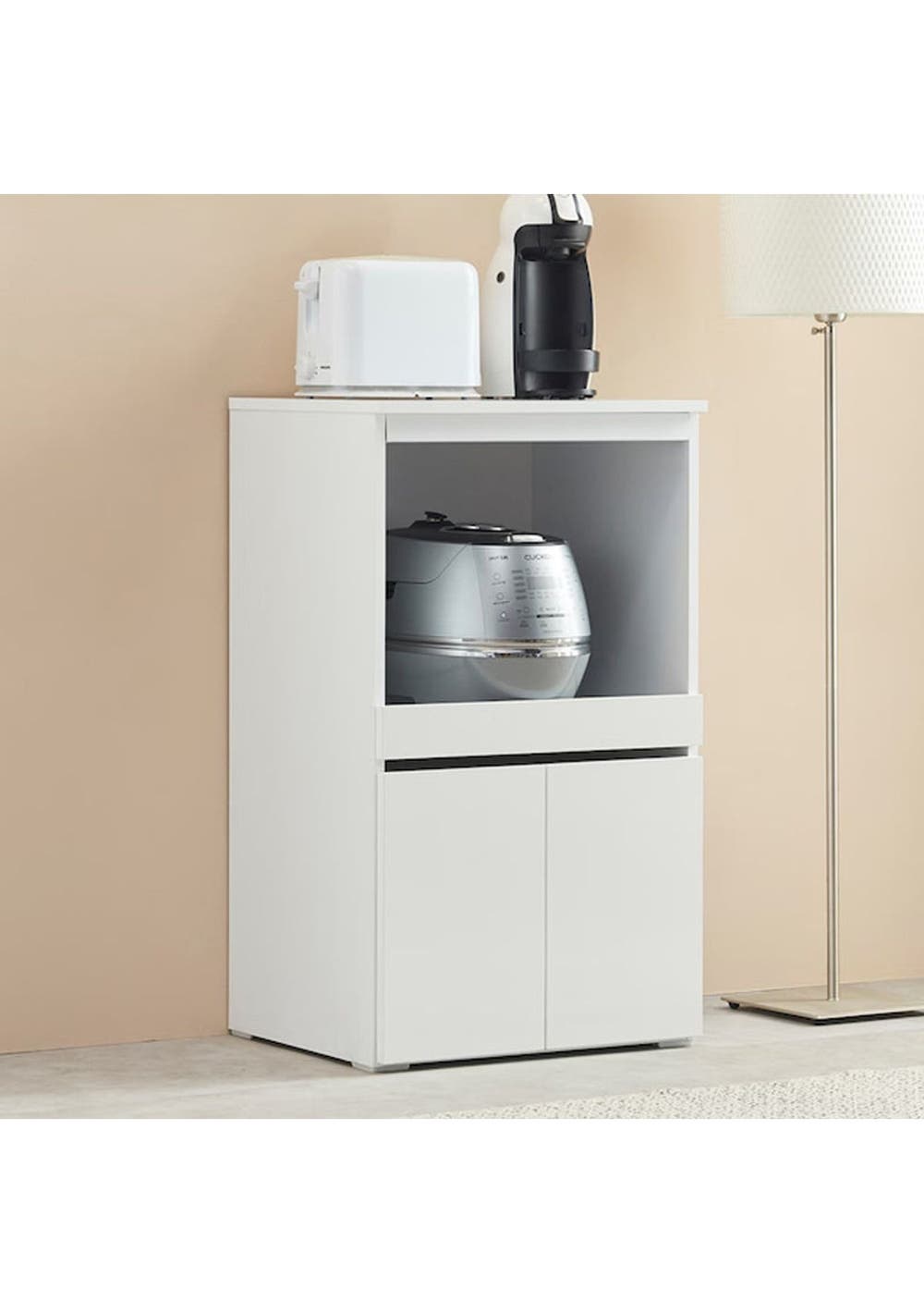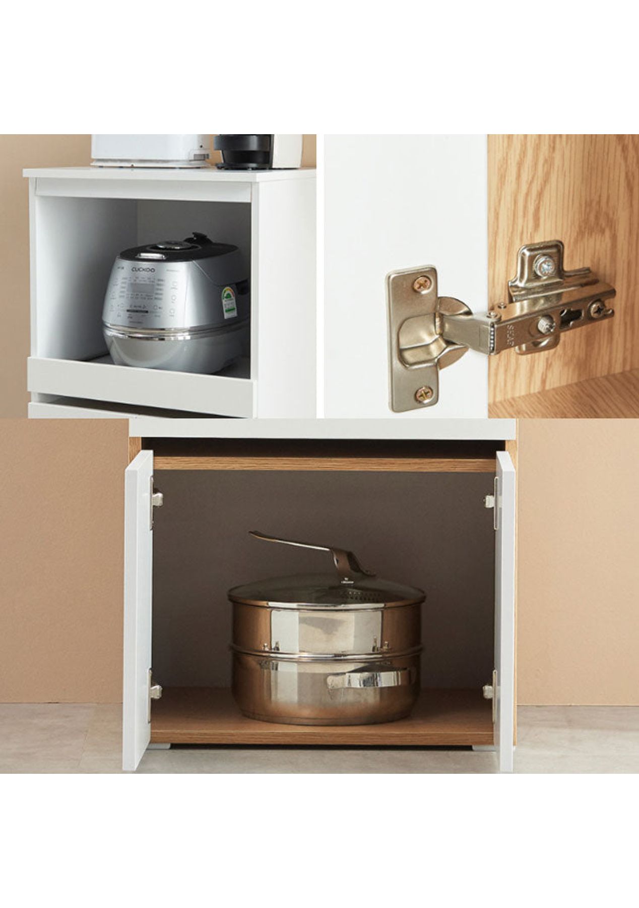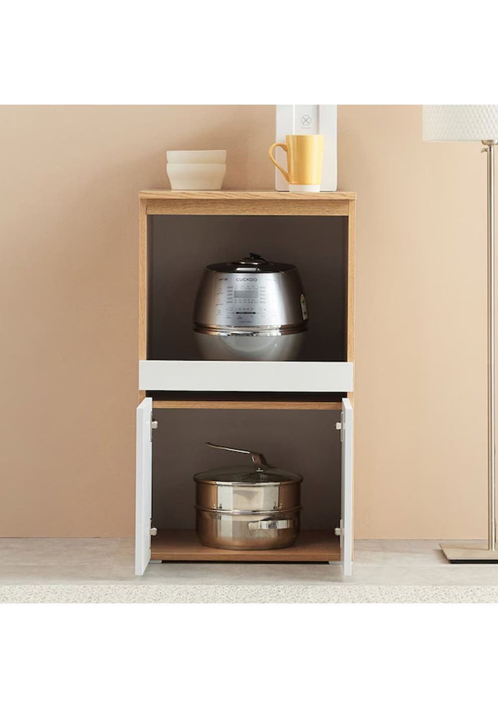 Features: ‚ The sliding shelf includes a cable hole, keeping wires neatly organised and out of sight for a cleaner look. ‚ Equipped with a safety stop bar, the sliding shelf can be fully extended without the risk of it coming off. ‚ Features a sleek, handleless drawer design for a modern, minimalist aesthetic. ‚ Perfect storage solution of appliances like microwaves, rice cookers, coffee machines, toasters, and more. Product details ‚ Dimensions: W 480 X D 400 X H 819 ‚ Materials: LPM, MDF, PB ‚ Assembly Required: No ‚ Colour: White, Oak * Please note that the colour can be different from your monitor * Package includes 1 x Kitchen Cabinet