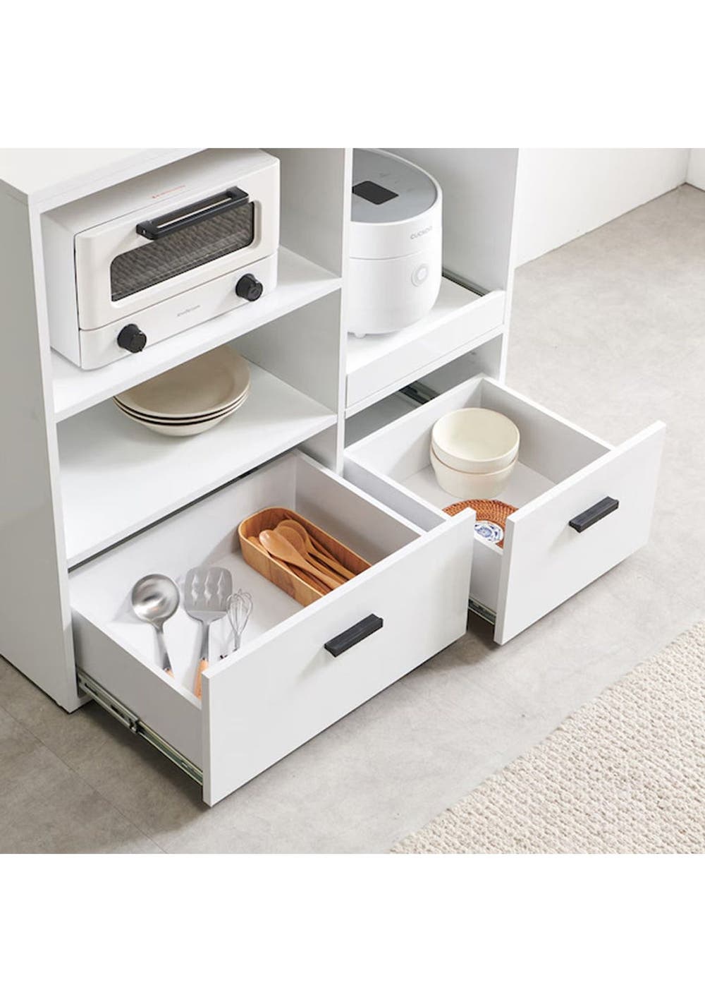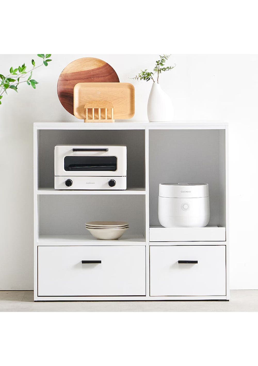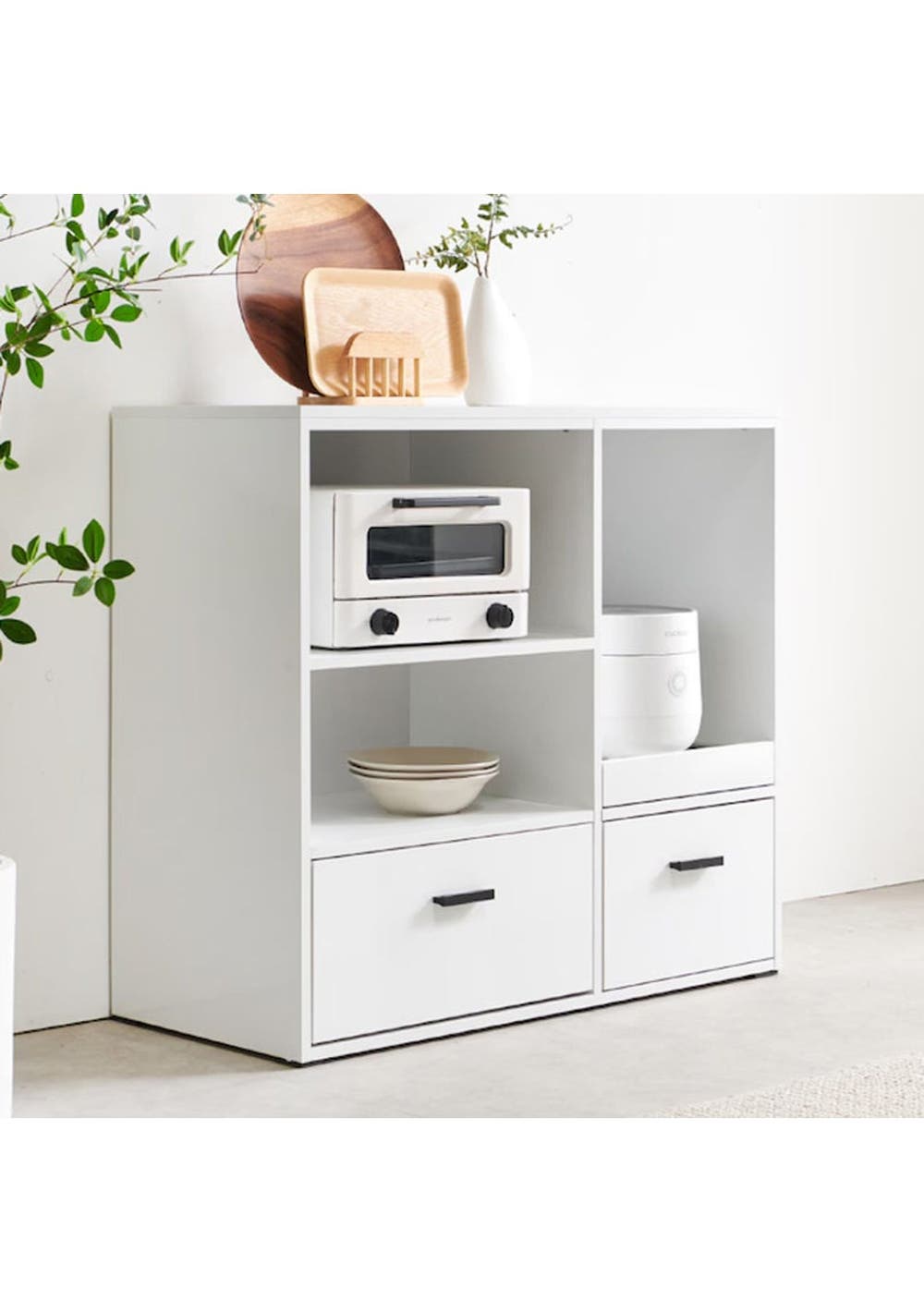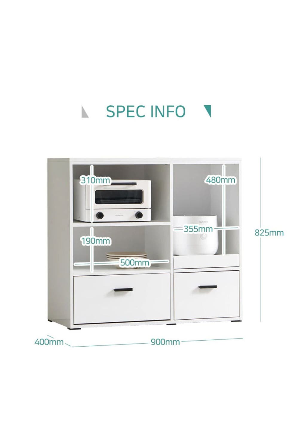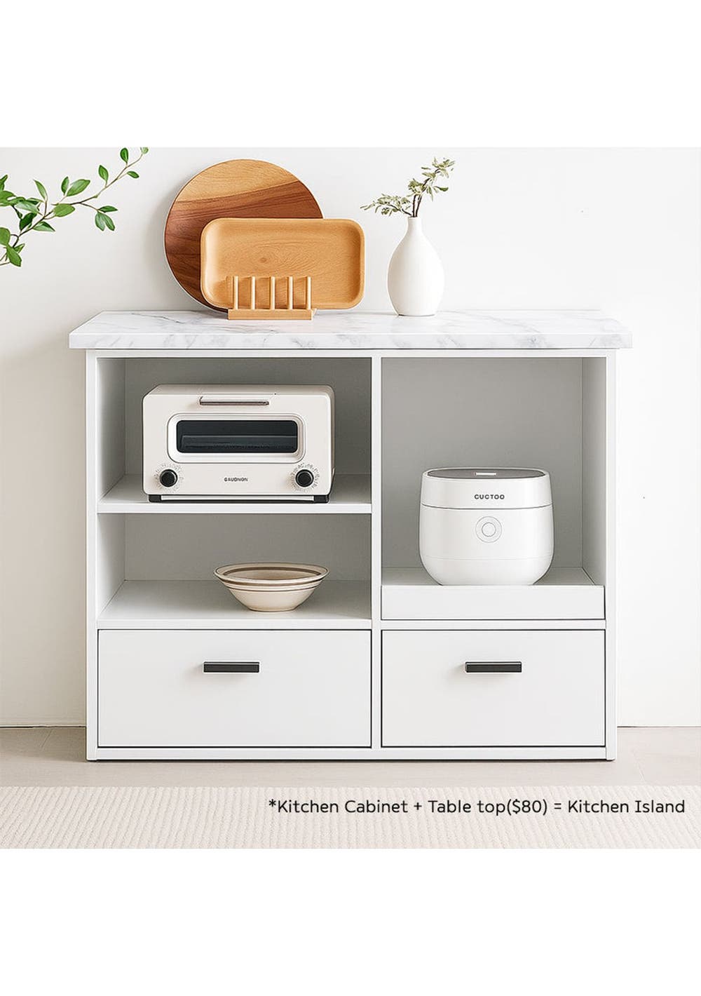 Features:‚Sleek and clean white finish that blends seamlessly with any kitchen interior‚Perfect for food preparation or displaying kitchen essentials‚Multiple storage compartments to keep kitchenware neatly organised‚Includes lower drawers for additional hidden storage‚Ideal for maximising kitchen space while maintaining a tidy and modern look **Optional Add-On:‚For an additional $80, you can add a tabletop to transform this cabinet into a compact kitchen island‚Available tabletop colours: White marble pattern, Grey stone pattern‚Tabletop size: W 995 x D 550 x H 23mm Product details ‚ Dimensions: W 900 X D 400 X H 825 mm‚ Materials: LPM, MDF, PB‚ Assembly Required: No(*If you want add a tabletop, simple fix it in place on the cabinet)‚ Colour: White * Please note that the colour can be different from your monitor* Package includes 1 x Kitchen Cabinet