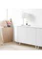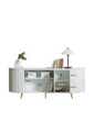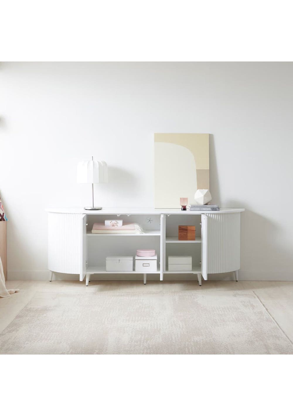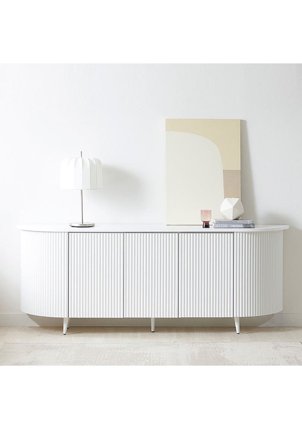 Features ‚ Modern & minimal design‚ Sturdy and durable ‚ Push to open doors‚ tambour board style‚ Gold & White colour legs available‚ 18mm Thickness top‚ Rounding edge Product Details ‚ Dimension: W 2000 x D 400 x H 750 mm‚ Materials: LPM(Low-Pressure Melamine), MDF, PB, PVC, Steel‚ Finish: Matt‚ Assembly Required: Yes(Simple legs assembly required)‚ Colour: White * Please note that the colour can be different from your monitor* Package includes 1 x sideboard