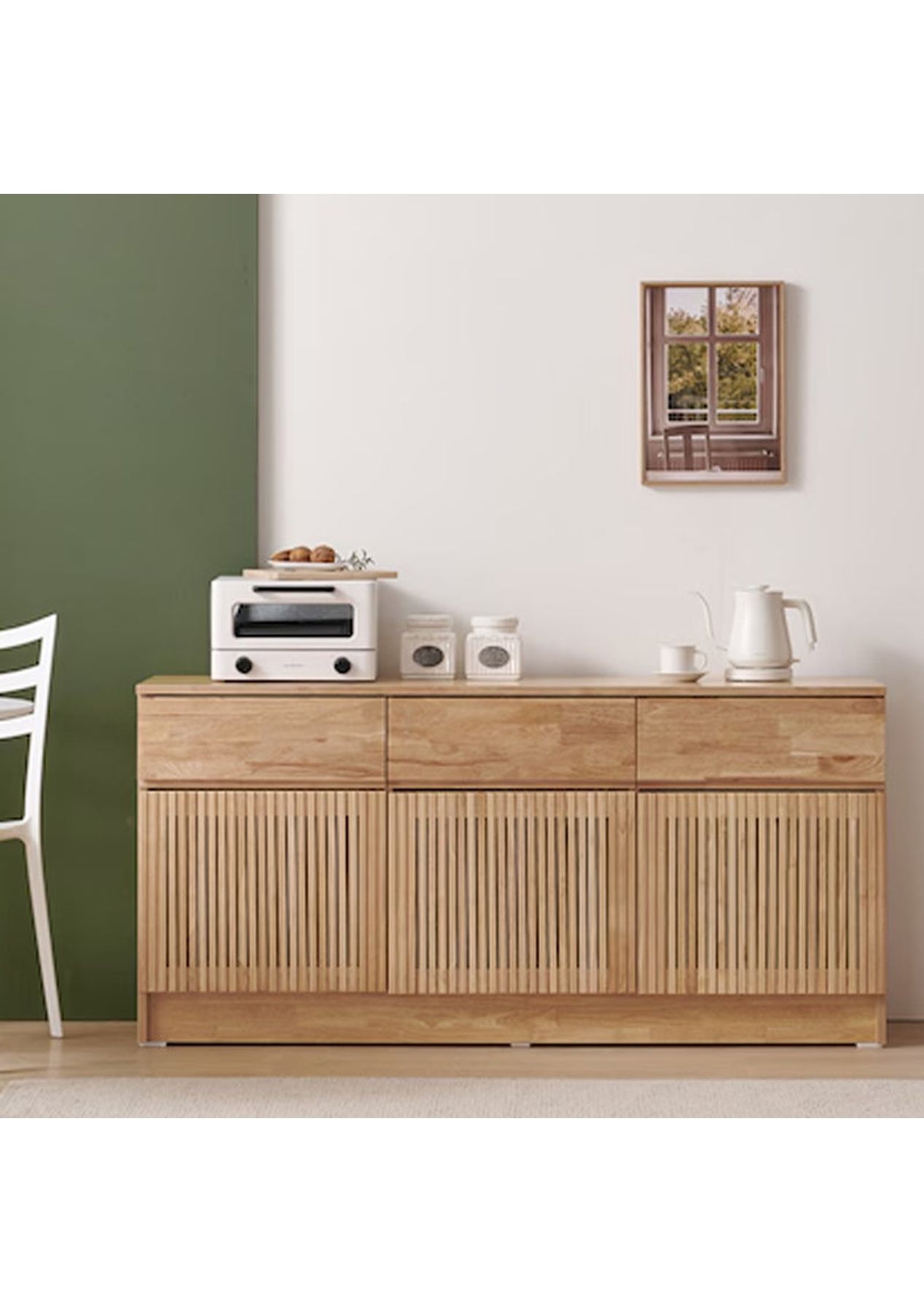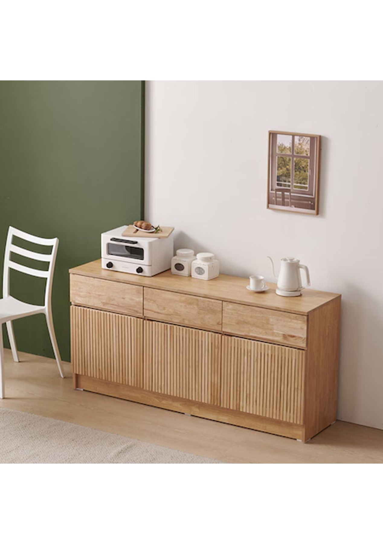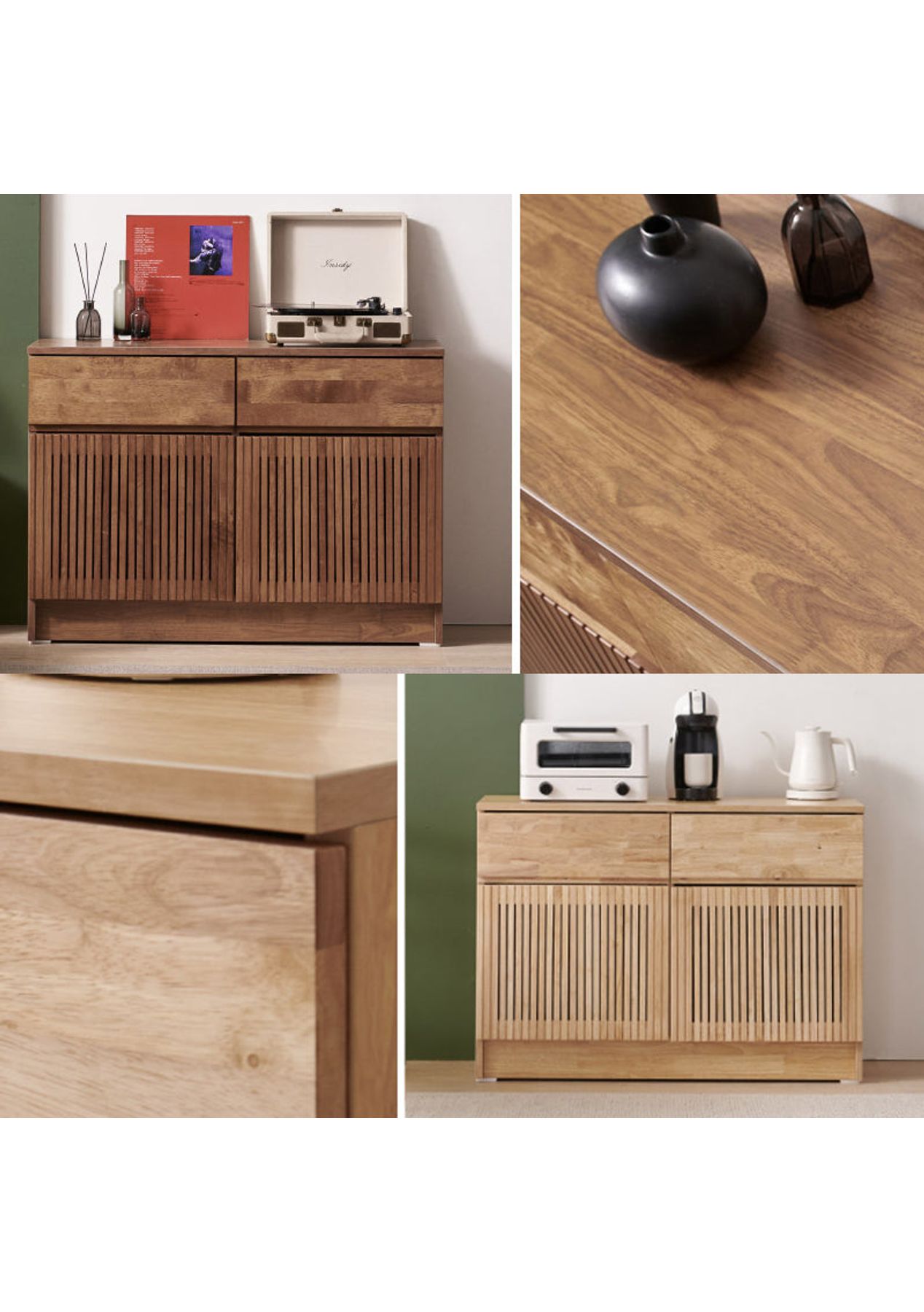 Timeless Storage with Natural Charm Bring warmth and character to any room with this beautifully crafted slatted cabinet, designed from solid rubberwood to complement both classic and modern interiors. Features ‚ Made from solid rubberwood & MDF with rich, natural grain for a warm and organic feel. ‚ Spacious interior offers versatile storage for daily essentials or decorative pieces. ‚ Available in two timeless finishes: deep walnut for a calm and natural oak for a light. ‚ Suitable for living rooms, bedrooms, or kitchens ‚Äî practical and stylish anywhere. ‚ Includes two removable shelves for flexible organisation. Product Details ‚ Dimension: W 1500 x D 400 x H 725 mm ‚ Materials: Rubberwood, MDF, LPM ‚ Assembly required: No ‚ Available colours: Natural, Walnut ‚ Available sizes: 1000mm, 1500mm * Please note that the colour can be different from your monitor * Package includes 1 x 1500mm cabinet