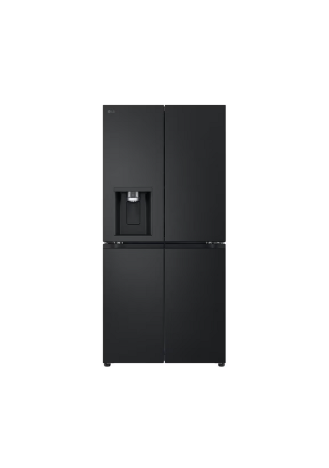 Key Features Slim 835mm width, designed for 850mm narrow alcoves Refreshing Plumbed Ice and Water Dispenser UVnano® Water Dispenser with built-in UV LED light A fresh approach with Multi Air Flow 10 year parts warranty on Smart Inverter Compressor Key Specs Net Total (L) 506 Product Dimension (WxHxD, mm) 835 x 1787 x 730 Energy Consumption (kWh/Year) 373 Compressor Type Smart Inverter Compressor (BLDC) InstaView No Door-in-Door No Plumbing Plumbing required ThinQ (Wi-Fi) Yes Finish (Door) Matte Black BASIC SPEC Product Type French Door CAPACITY Net Total (L) 506 Net Refrigerator (L) 286 Net Freezer (L) 209 Net Ice Making Room (L) 11 CONTROL & DISPLAY Door alarm Yes Internal LED Display Yes Express Freeze Yes DIMENSIONS & WEIGHT Packing Weight (kg) 136 Product Weight (kg) 126 Height to Top of Case (mm) 1753 Depth without door (mm) 619 Product Dimension (WxHxD, mm) 835 x 1787 x 730 Packing (WxHxD) (mm) 885 x 1889 x 768 FEATURES Door Cooling+ Yes Door-in-Door No LINEAR Cooling Yes InstaView No UVNano Yes Refrigerant Name R600a ICE & WATER SYSTEM Ice Maker_Manual No Plumbing Plumbing required Ice & Water Dispenser Yes(Cube & Crushed Ice) Automatic Ice Maker Yes (Spaceplus) Craft Ice No Water Filtration System Yes MATERIAL & FINISH Finish (Door) Matte Black Flat Metal Duct (Metal Fresh) Yes PERFORMANCE Compressor Type Smart Inverter Compressor (BLDC) Energy Consumption (kWh/Year) 373 Energy Rating 4.5 Star REFRIGERATOR COMPARTMENT Door Basket_Transparent 5 Refrigerator Light Top LED Shelf_Tempered Glass 3 Vegetable Box Yes (2) Shelf_Folding Yes (1) Pure N Fresh Yes SMART TECHNOLOGY Smart Diagnosis Yes ThinQ (Wi-Fi) Yes Bluetooth Speaker No EAN CODE EAN Code 8806084695512 FREEZER COMPARTMENT Door Basket_Transparent No Freezer Light Top LED Shelf_Tempered Glass No Drawer_Freezer 6 / 2 Piece(Clear) WARRANTY Product Definable Spec Only in LG.COM Compressor Definable Spec Only in LG.COM