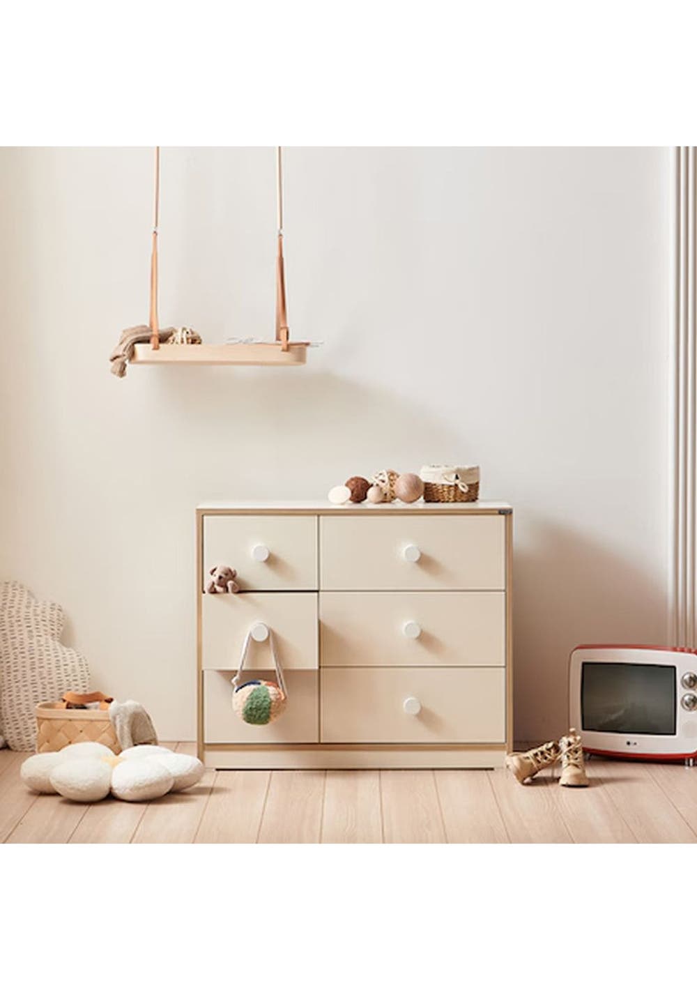 A stylish and practical kids‚Äô drawer unit perfect for modern New Zealand homes, this chest of drawers is made from durable birch plywood with soft-toned finishes ‚Äî ideal for organising clothes, toys, or everyday essentials in any child‚Äôs bedroom or playroom. Features ‚ Designed with child-safe LPM panels using eco-friendly paper by Germany's Schattdecor. ‚ Sturdy birch plywood edges reveal natural grain texture, adding warmth and durability. ‚ Smooth-glide drawers are easy for kids to open and close independently. ‚ Finished in a soft matte tone for a calm and sophisticated atmosphere. ‚ Large circular wooden knobs ensure a firm grip and are securely fixed for long-term use. ‚ Built to last and designed to grow with your child ‚Äî from toddler years to primary school. Product Details ‚ Dimension: - W 900 x D 450 x H 740 mm ‚ Materials: LPM, Birch plywood ‚ Assembly required: No ‚ Available colour: Cream white * Please note that the colour can be different from your monitor * Package includes 1 x KAI Kids 6 Drawers Lowboy
