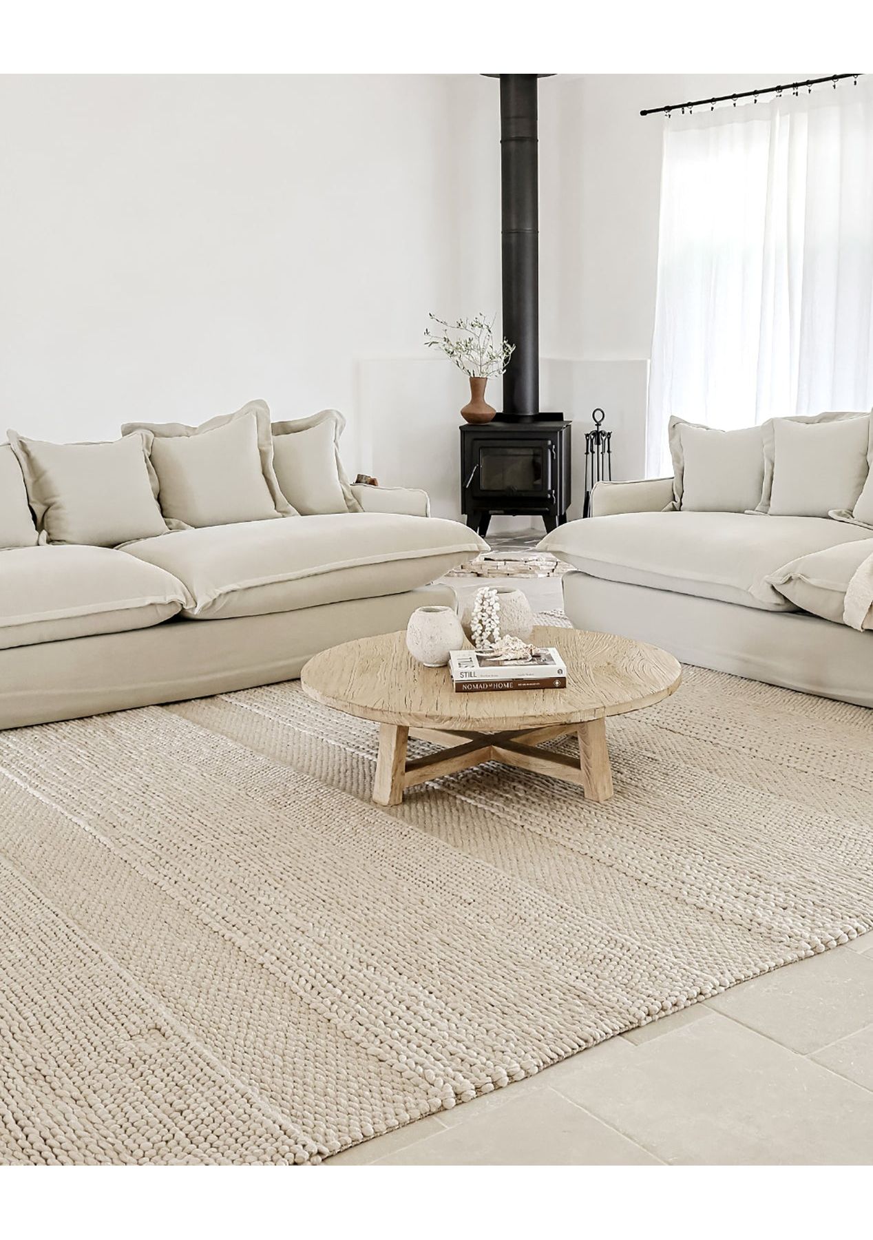 Designed in house and exclusive to the Miss Amara Collection, Joline is a luxurious wool blend featuring a marbled natural brown beige palette perfect for your coastal, neutral space. Joline has been handcrafted using a unique combination of traditional rug making techniques, showcasing the intricate workmanship of our skilled artisans.Woven, looped and braided techniques have been used to stunning effect and together give the rug a gorgeous thick and spongey pile underfoot. This tactile design would be the perfect addition to the bedroom or lounge room to add a sense of warmth. We recommend the use of a non slip underlay to extend the life of your rug and protect from any slippage or buckling. This product is lovingly handmade by skilled artisans and as such may encounter variations in pattern and colour which may vary from the images shown, this is entirely normal and part of the inherent nature of the production techniques. The size may also vary up to 5% in length and width due to natural variations in materials. Natural shedding can be expected and this is normal. New wool rugs will shed lightly in the first few months and will be low-shed after this time. The shedding will lessen after the first 3-6 months depending on the level of use.