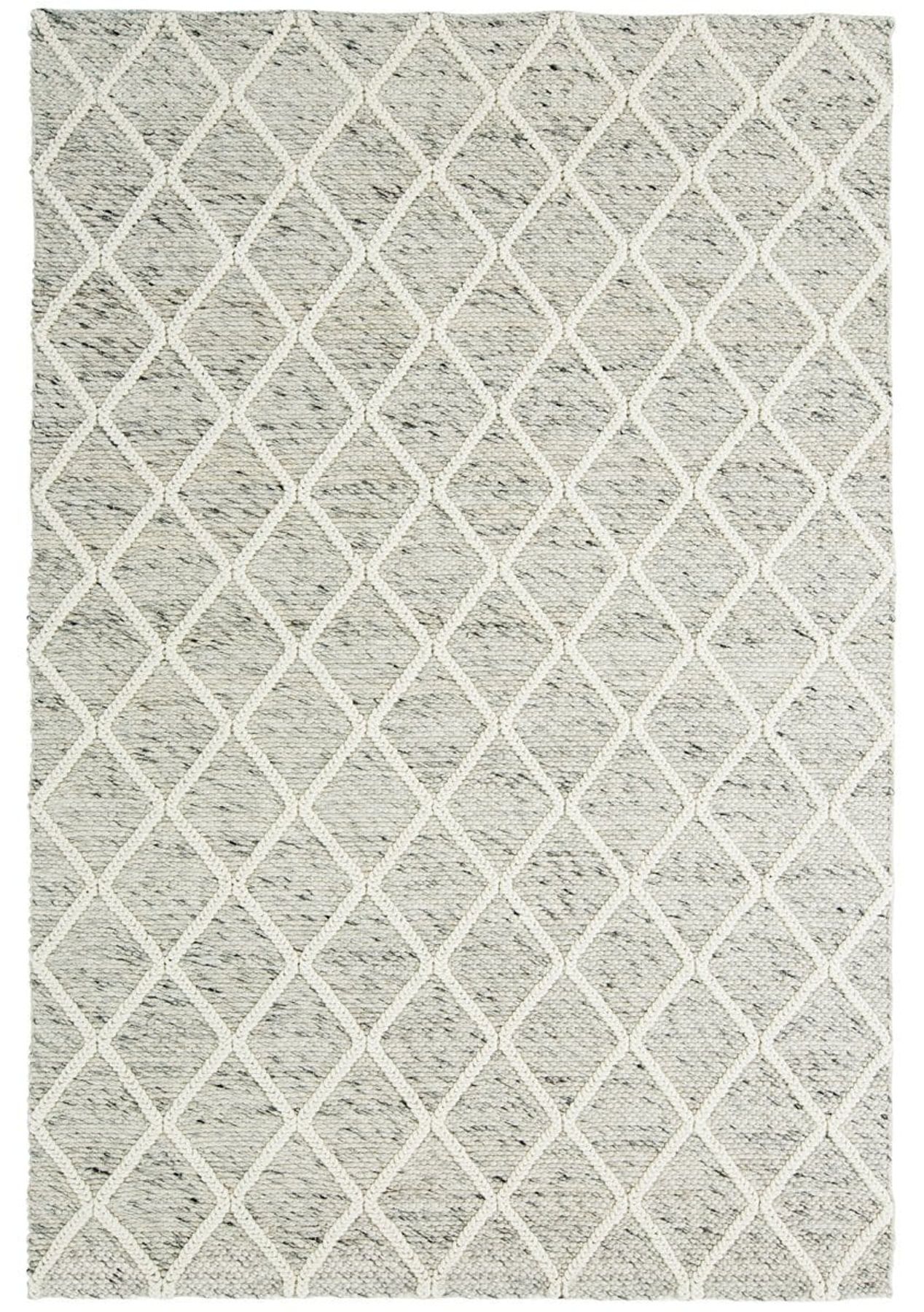 Designed exclusively for the Miss Amara Collection, Anja is a marbled grey and ivory flatweave wool rug with a simple diamond lattice pattern. Set against a backdrop of marbled grey wool, Anja features a braided diamond pattern in contrasting ivory for a three-dimensional effect and gorgeous texture. This bold design would make a beautiful grounding focal point in a contemporary, scandi inspired setting. Woven from 100% natural wool, Anja has a dense, soft and natural underfoot feel and will age gracefully thanks to the inherently resilient qualities of natural wool fibres.This product is lovingly handmade by skilled artisans and as such may encounter variations in pattern and colour which may vary from the images shown, this is entirely normal and part of the inherent nature of the production techniques. The size may also vary up to 5% in length and width due to natural variations in materials. Natural shedding can be expected and this is normal. New wool rugs will shed lightly in the first few months and will be low-shed after this time. The shedding will lessen after the first 3-6 months depending on the level of use.