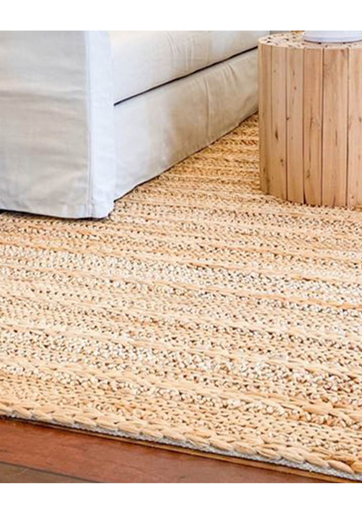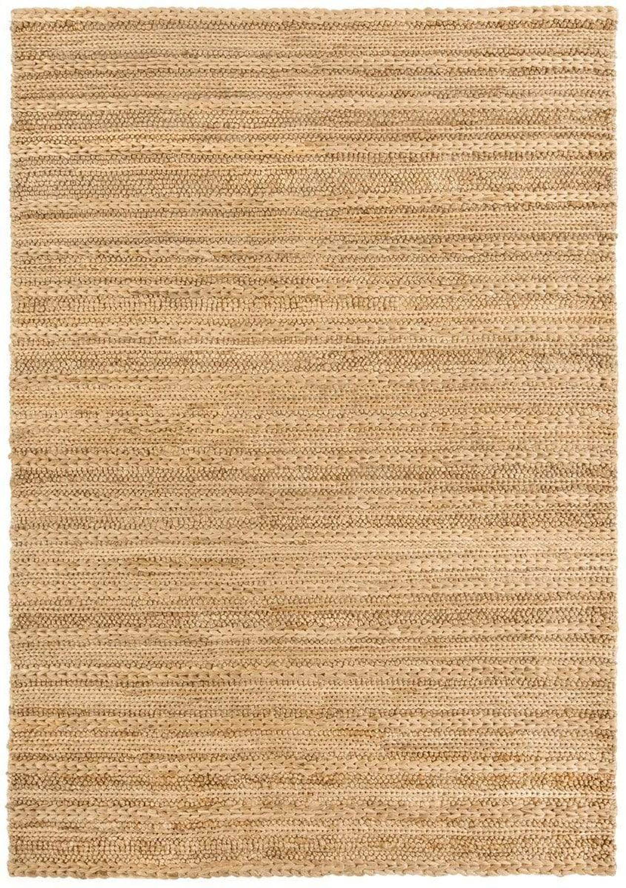 Designed in-house exclusively for the Miss Amara Collection, Eboni is a chunky jute rug featuring a natural tan colour palette. A truly unique design piece, Eboni has been constructed using a combination of traditional rug techniques. Handwoven in India by skilled artisans, the threads have been looped and braided to create a stunning linear design with loads of texture.Made from a blend of eco-friendly jute and natural cotton, Eboni has a natural, silky tactile feel and heroes the beautiful natural colour variations of the undyed jute fibres. This product is lovingly handmade by skilled artisans and as such may encounter variations in pattern and colour which may vary from the images shown, this is entirely normal and part of the inherent nature of the production techniques. The size may also vary up to 5% in length and width due to natural variations in materials.