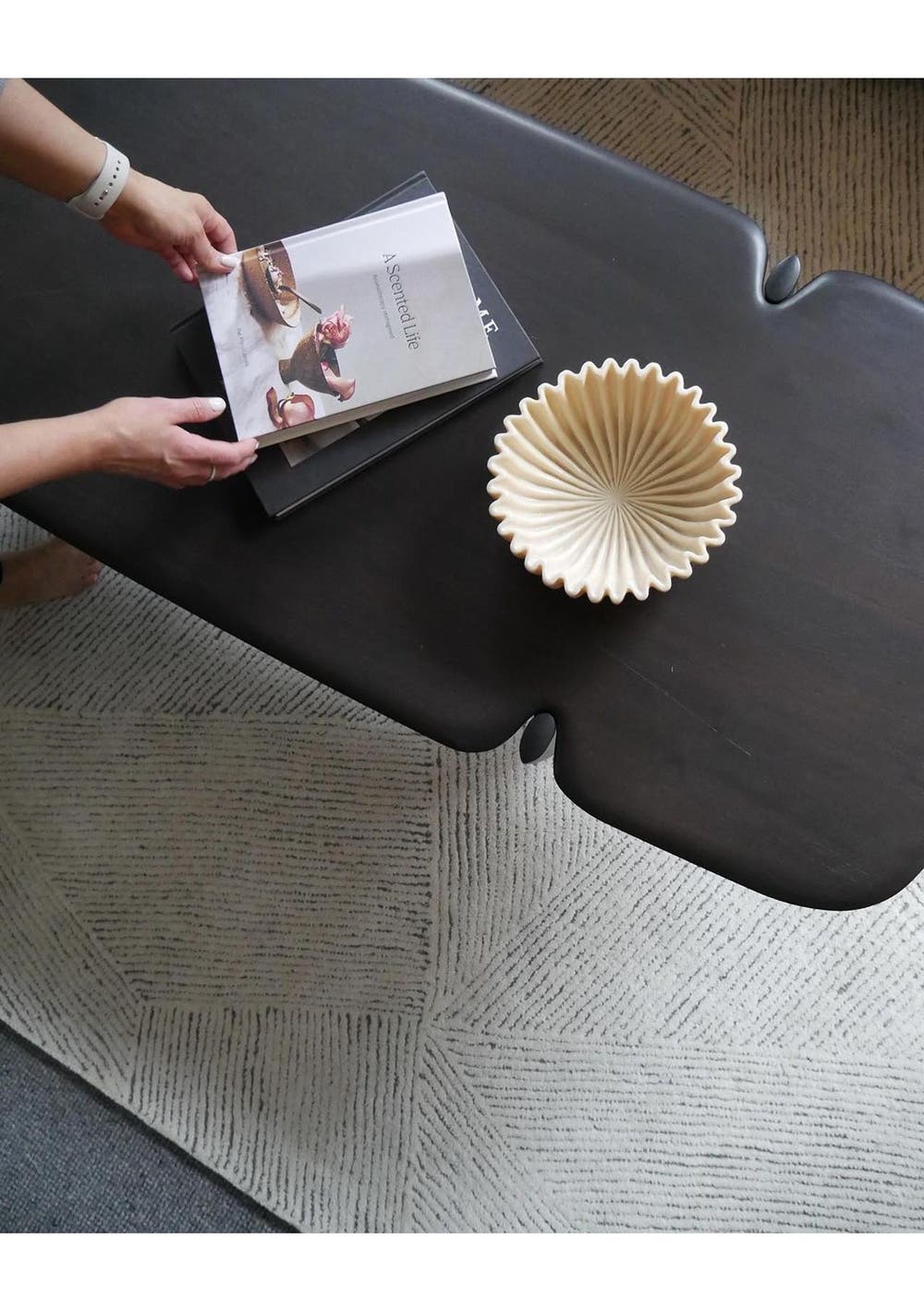 A statement piece from the Miss Amara Timeless Collection, Tilde is a handcrafted wool rug featuring an abstract striped print in contrasting charcoal and ivory. Made in India, Tilde has been crafted using a time-intensive hand-knotted method for a luxurious pile of ultra-dense natural wool fibres that will retain it’s plush underfoot feel for many years to come thanks to the inherently resilient qualities of this fabulous natural fibre. The abstract striped pattern was custom designed by our in-house team with a range of contemporary settings in mind. The bold charcoal and ivory colourway would create a stunning anchor in any space, adding an element of monochromatic elegance and subtle tribal vibe to your interior. This product is lovingly handmade by skilled artisans and as such may encounter variations in pattern and colour which may vary from the images shown, this is entirely normal and part of the inherent nature of the production techniques. The size may also vary up to 5% in length and width due to natural variations in materials. Natural shedding can be expected and this is normal. New wool rugs will shed lightly in the first few months and will be low-shed after this time. The shedding will lessen after the first 3-6 months depending on the level of use.
