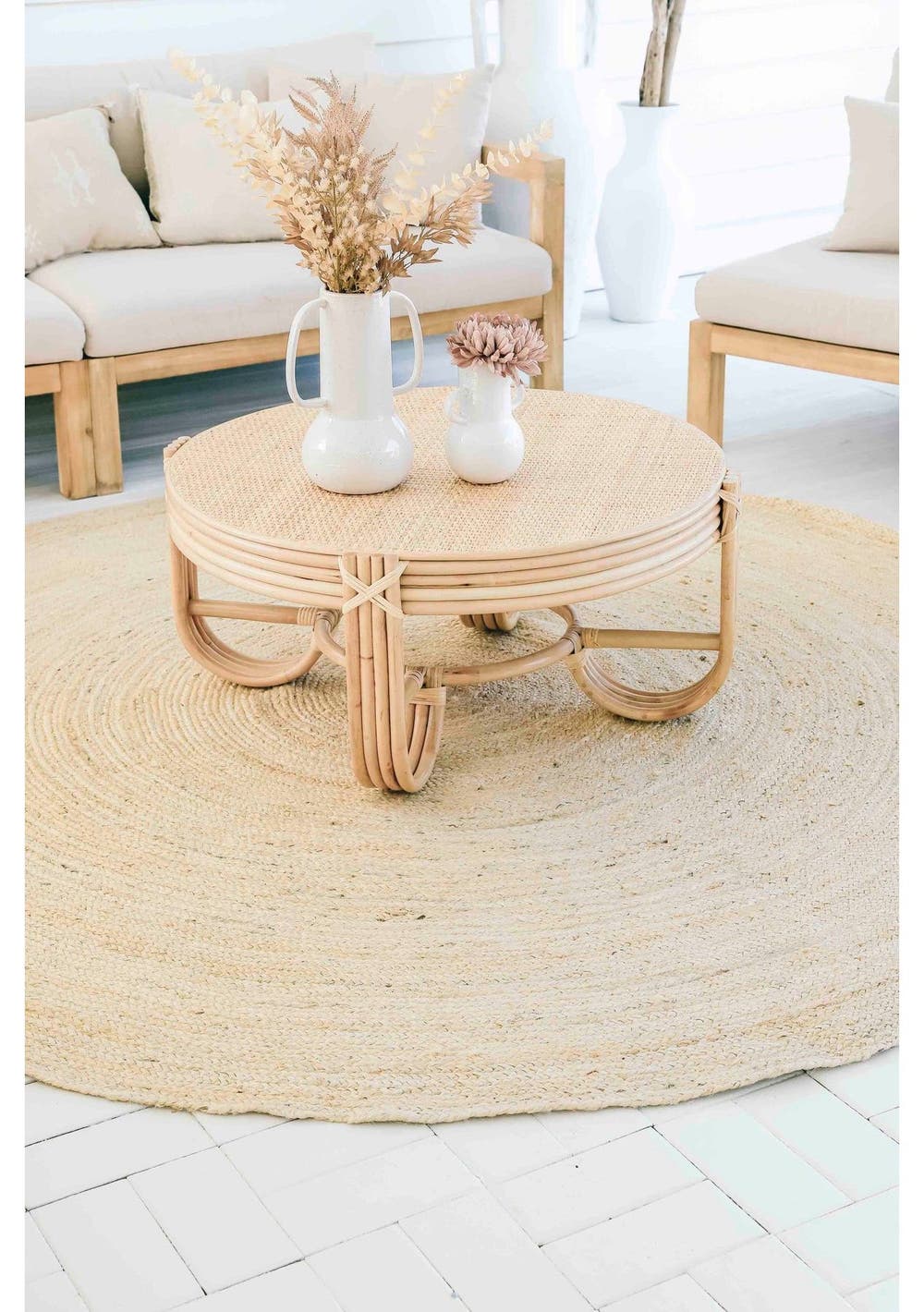Sete Bleached Hand-Braided Round Jute Rug