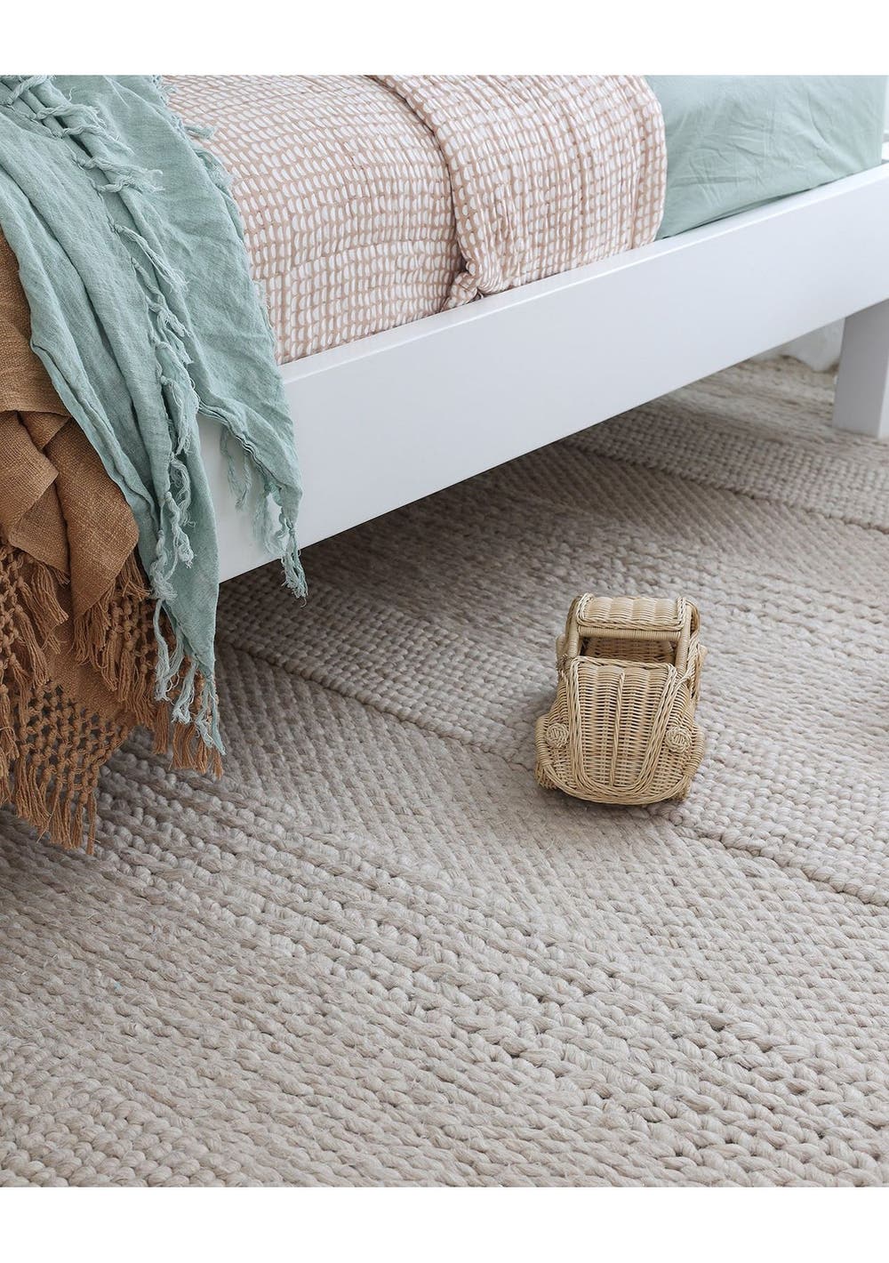 Designed in house and exclusive to the Miss Amara Collection, Joline is a luxurious wool blend featuring a marbled natural brown beige palette perfect for your coastal, neutral space. Joline has been handcrafted using a unique combination of traditional rug making techniques, showcasing the intricate workmanship of our skilled artisans.Woven, looped and braided techniques have been used to stunning effect and together give the rug a gorgeous thick and spongey pile underfoot. This tactile design would be the perfect addition to the bedroom or lounge room to add a sense of warmth. We recommend the use of a non slip underlay to extend the life of your rug and protect from any slippage or buckling. This product is lovingly handmade by skilled artisans and as such may encounter variations in pattern and colour which may vary from the images shown, this is entirely normal and part of the inherent nature of the production techniques. The size may also vary up to 5% in length and width due to natural variations in materials. Natural shedding can be expected and this is normal. New wool rugs will shed lightly in the first few months and will be low-shed after this time. The shedding will lessen after the first 3-6 months depending on the level of use.