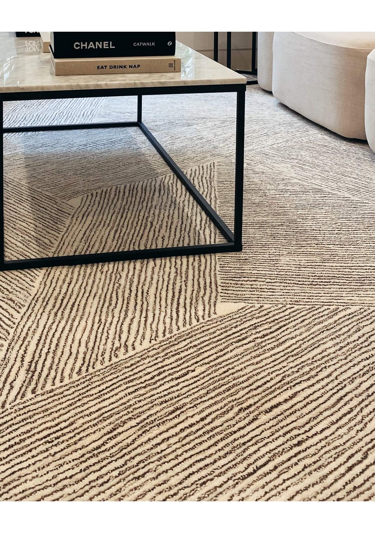 A statement piece from the Miss Amara Timeless Collection, Tilde is a handcrafted wool rug featuring an abstract striped print in contrasting charcoal and ivory. Made in India, Tilde has been crafted using a time-intensive hand-knotted method for a luxurious pile of ultra-dense natural wool fibres that will retain it’s plush underfoot feel for many years to come thanks to the inherently resilient qualities of this fabulous natural fibre. The abstract striped pattern was custom designed by our in-house team with a range of contemporary settings in mind. The bold charcoal and ivory colourway would create a stunning anchor in any space, adding an element of monochromatic elegance and subtle tribal vibe to your interior. This product is lovingly handmade by skilled artisans and as such may encounter variations in pattern and colour which may vary from the images shown, this is entirely normal and part of the inherent nature of the production techniques. The size may also vary up to 5% in length and width due to natural variations in materials. Natural shedding can be expected and this is normal. New wool rugs will shed lightly in the first few months and will be low-shed after this time. The shedding will lessen after the first 3-6 months depending on the level of use.