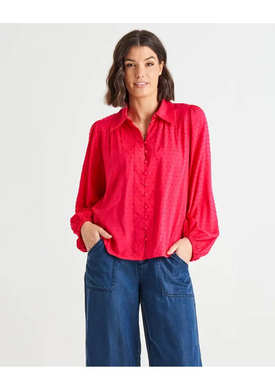 Introducing the Sinead Shirt - where comfort meets style in the most delightful way! With its classic collared neck, charming self-fabric buttons, and relaxed elastic cuff sleeves, this shirt brings effortless elegance to any occasion. Designed for a relaxed fit, it's perfect for those laid-back days when you want to look and feel your best. Upgrade your wardrobe with this must-have piece that's as comfy as it is chic! -Collared neck -Self fabric buttons -Relaxed elastic cuff sleeve -Relaxed fit Fabric and Care 100% Viscose Cold Gentle Machine Wash Dry Cleanable
