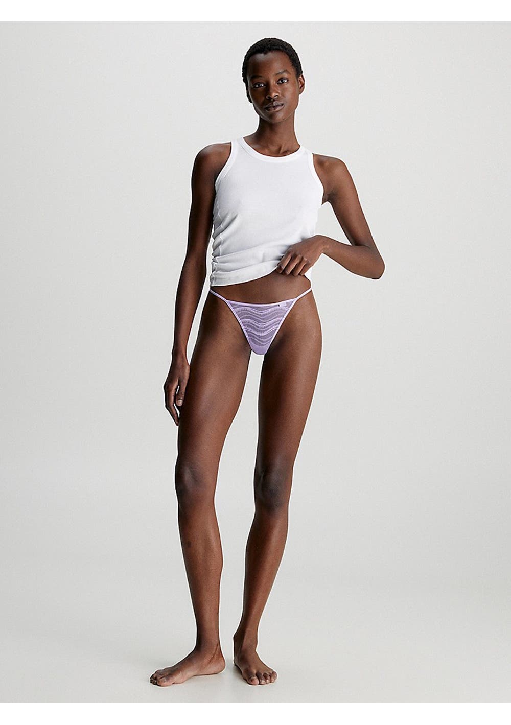 Calvin Klein - Womens Sheer Lace String Thong - Pastel Lilac