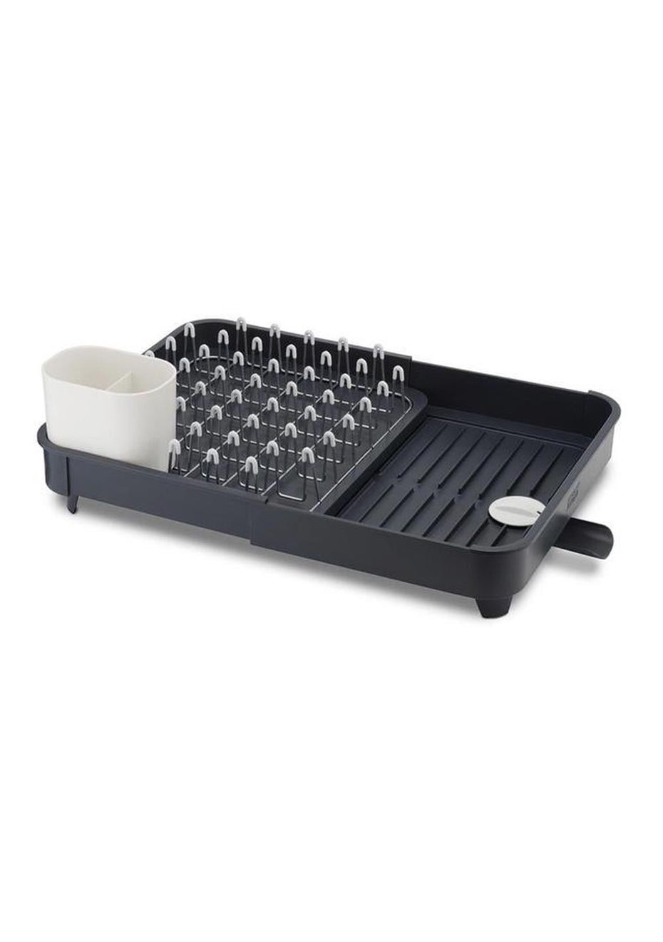 Extend allows you to quickly and easily expand your draining space. When required it can be extended to almost twice its size to accommodate the washing up after either single-or family-sized meals. An integrated spout helps to drain away any excess water, but this can be rotated away and closed trapping water inside for draining later. This means that Extend can also be used to create additional draining space anywhere. With plated steel prongs and non-scratch tips that make it suitable for all types of glassware and crockery, this versatile drainer can be extended to create additional draining space that is ideal for cups and bowls. A moveable cutlery drainer allows for flexible use and non-slip feet to ensure that wherever it is used, the unit will be secure and stable. The steel rack can be removed for easy cleaning.