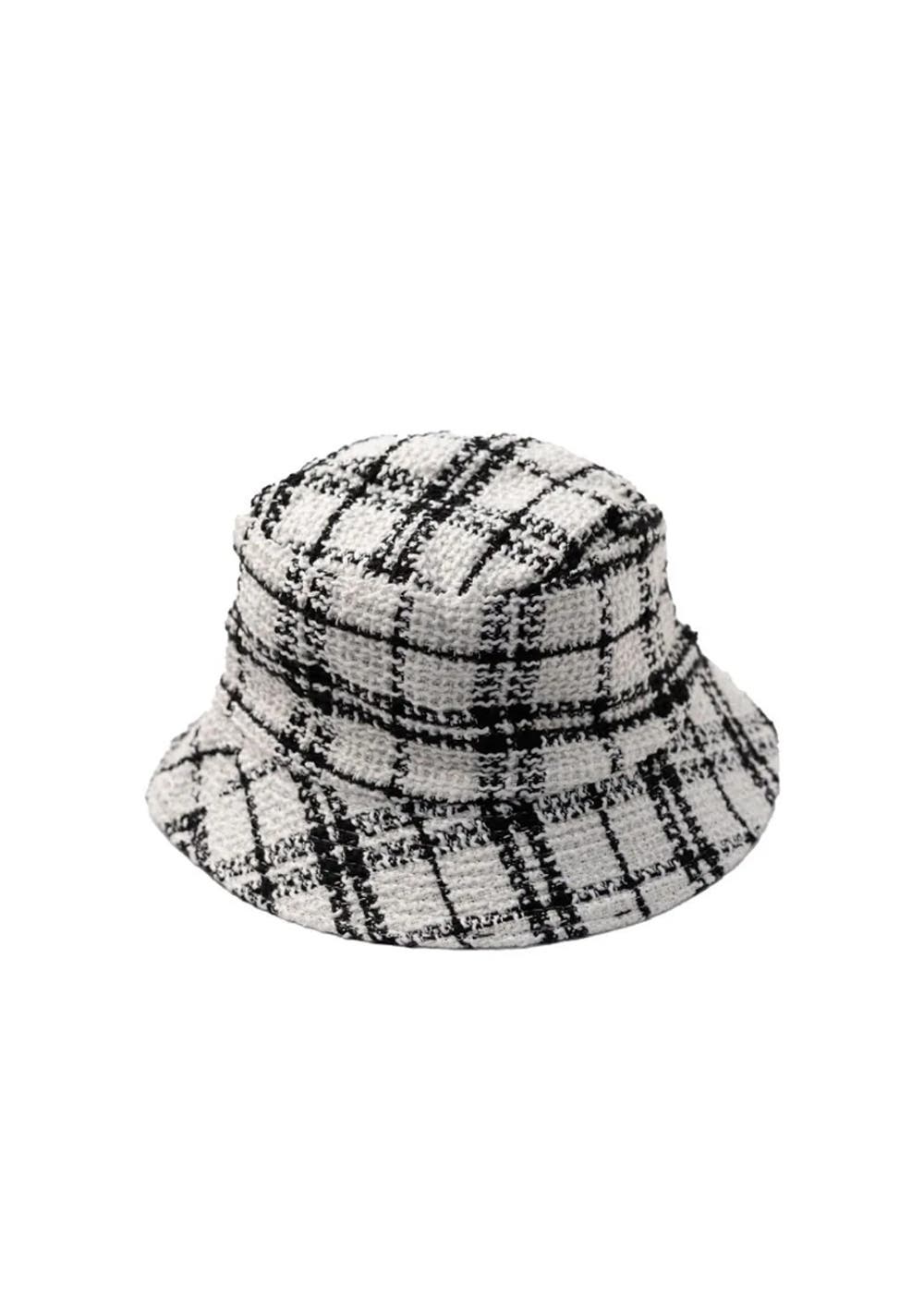 White based bucket hat with on trend plaid print 100% Polyester Made in China