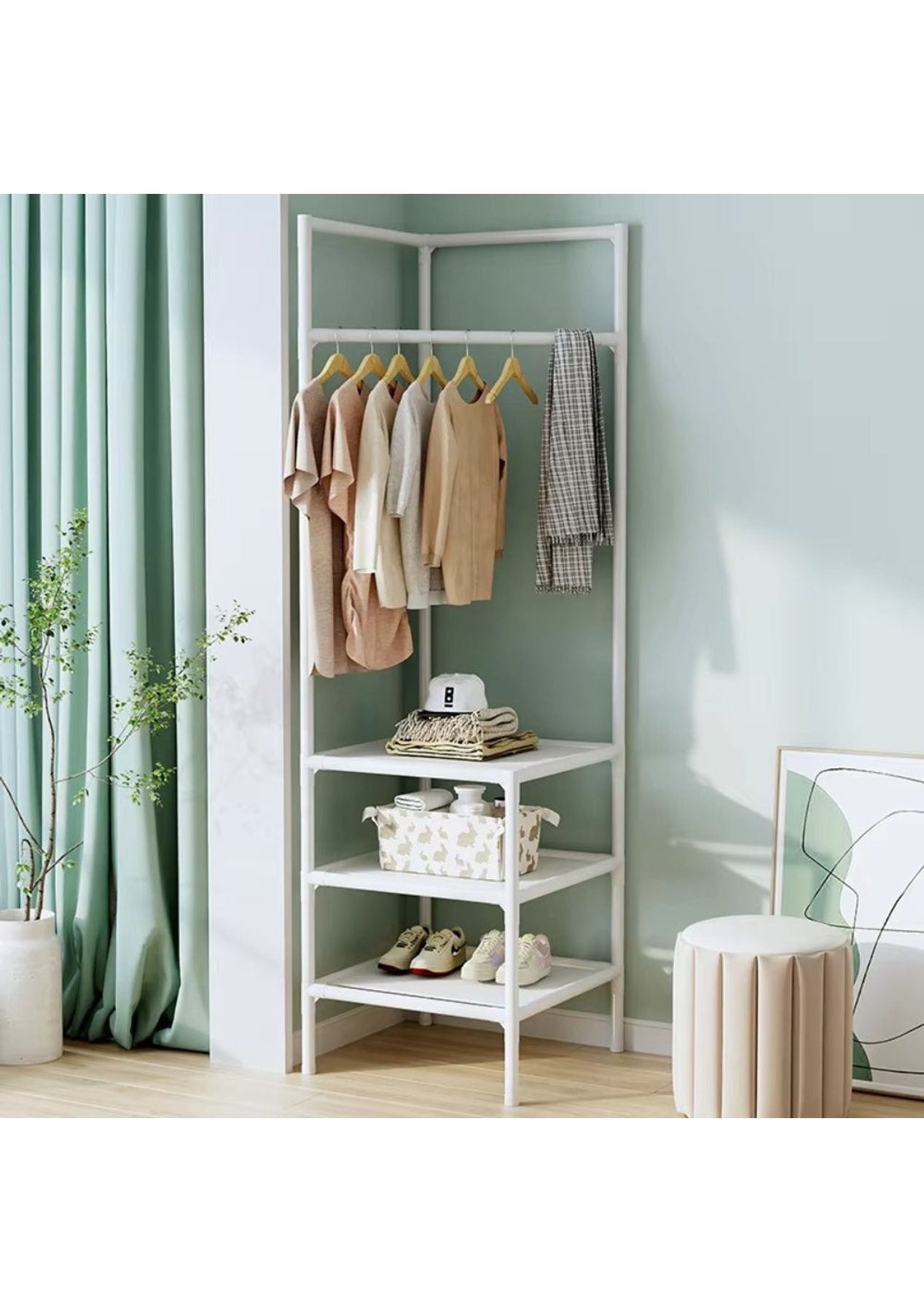 Multifunction Multi-Layer Floor Standing Corner Hanger Clothing Storage Shelf - 2 layer white